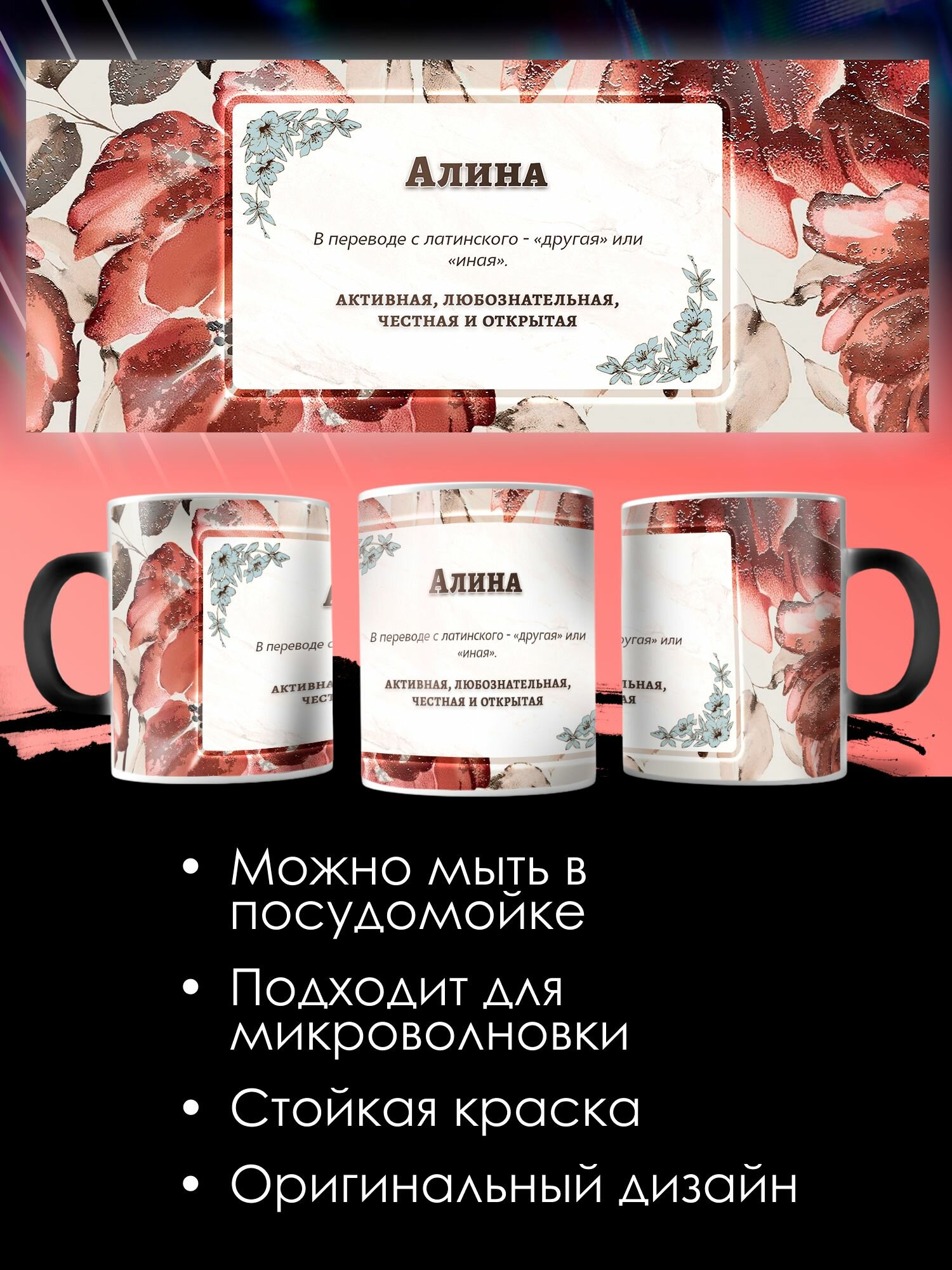 Ниже Вы можете прочитать отзывы на Кружка Хамелеон с принтом именная Алина, ознакомится с подробными характеристиками, посмотреть интересные обзоры и фотографии на Кружка Хамелеон с принтом именная Алина.