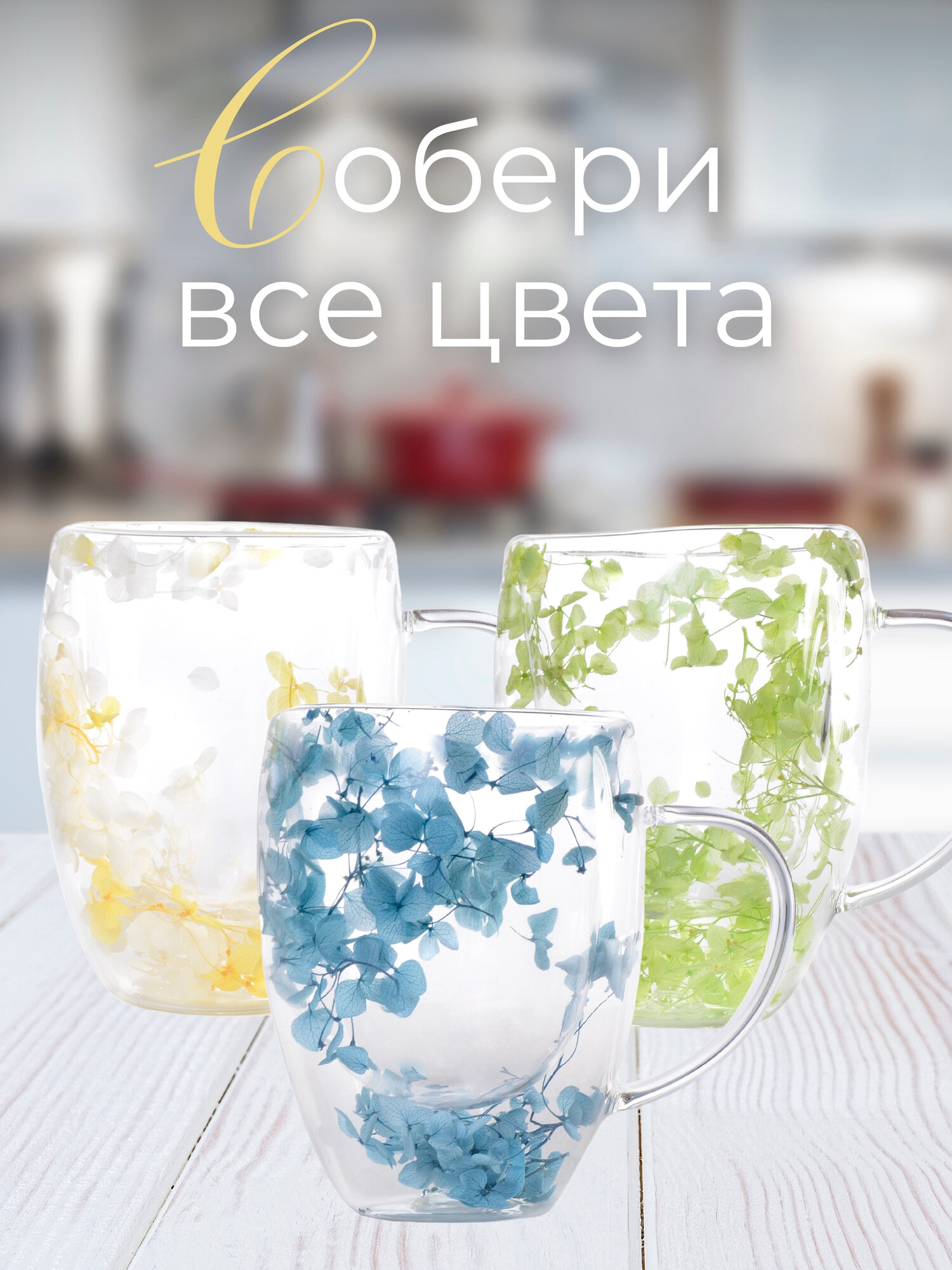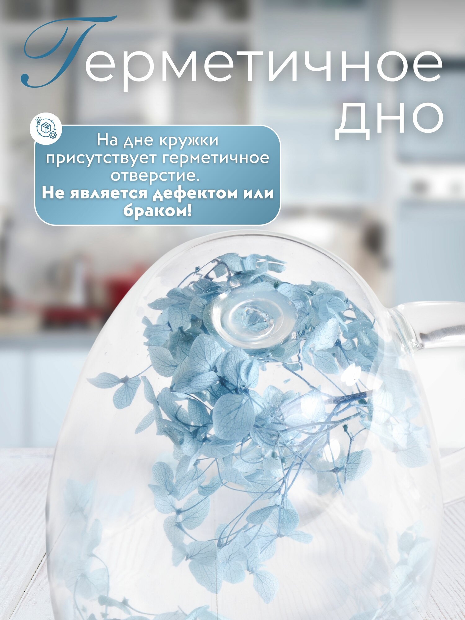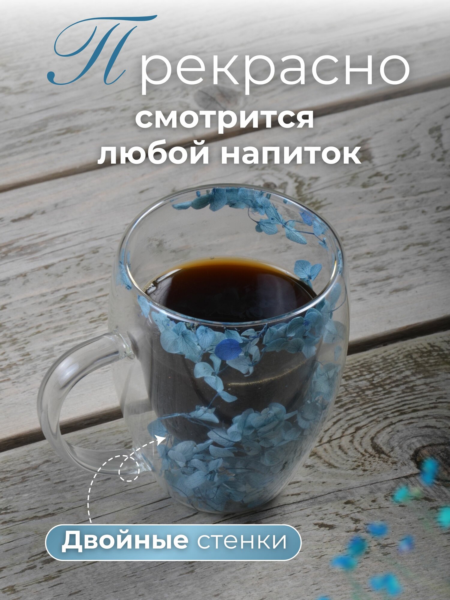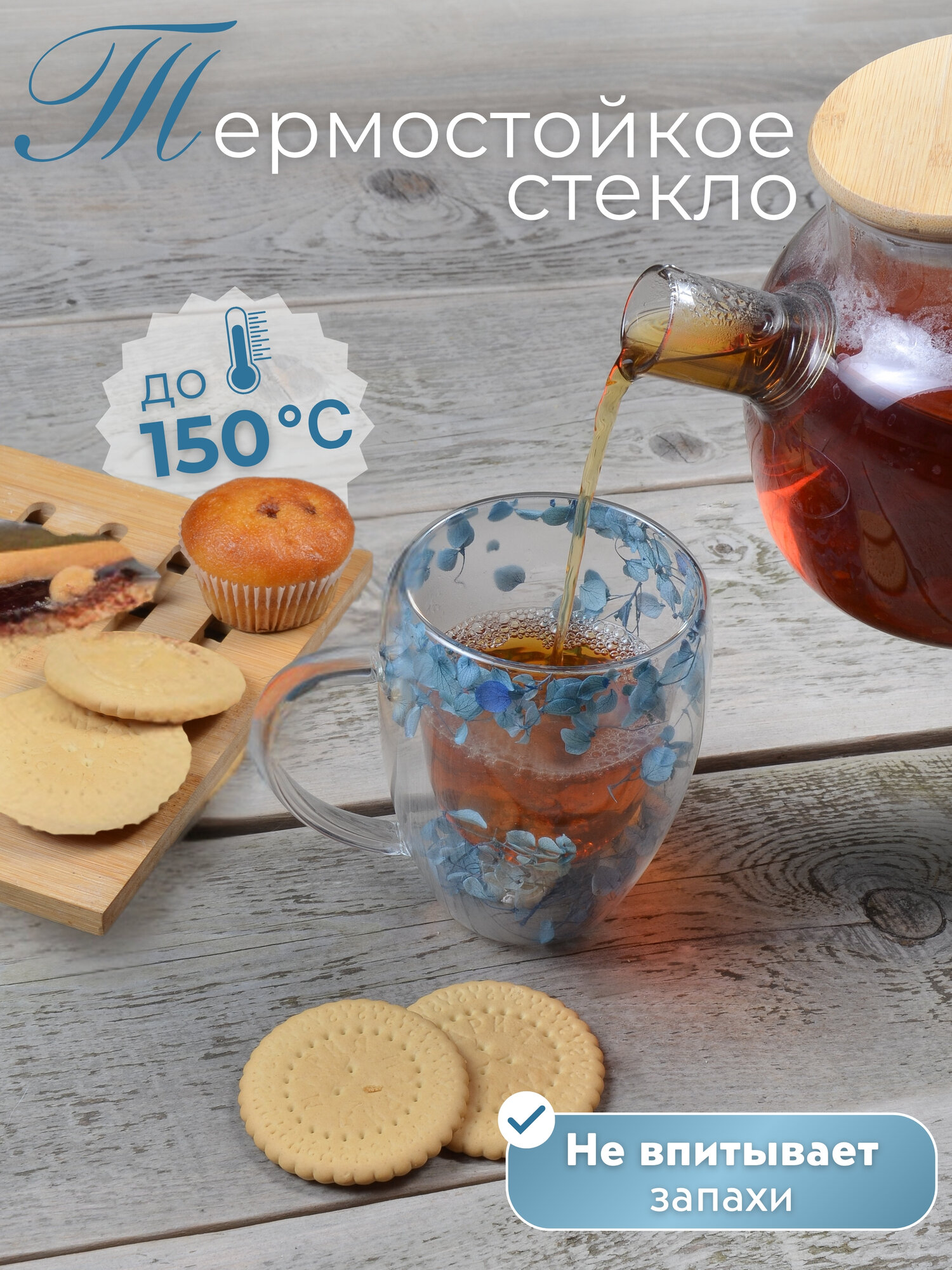 Кружка "Двойные стенки", с сухоцветами, жаропрочное стекло, 350 мл, голубая интересное: