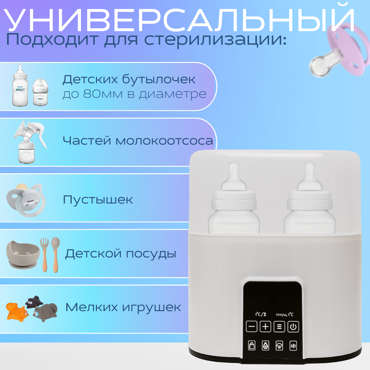 Стерилизатор для бутылочек 4 в 1, электрический, для 2 бутылочек с функцией подогревателя интересное: