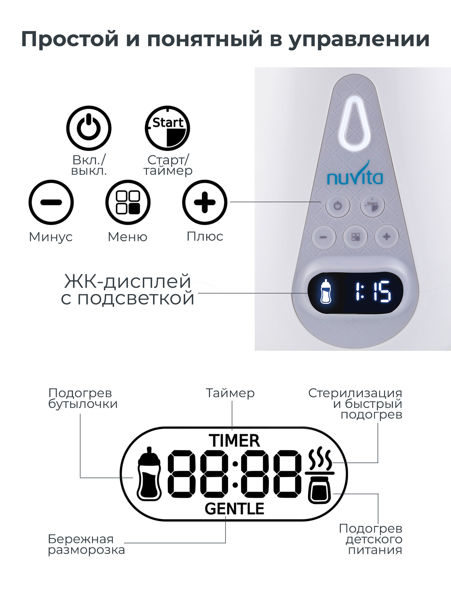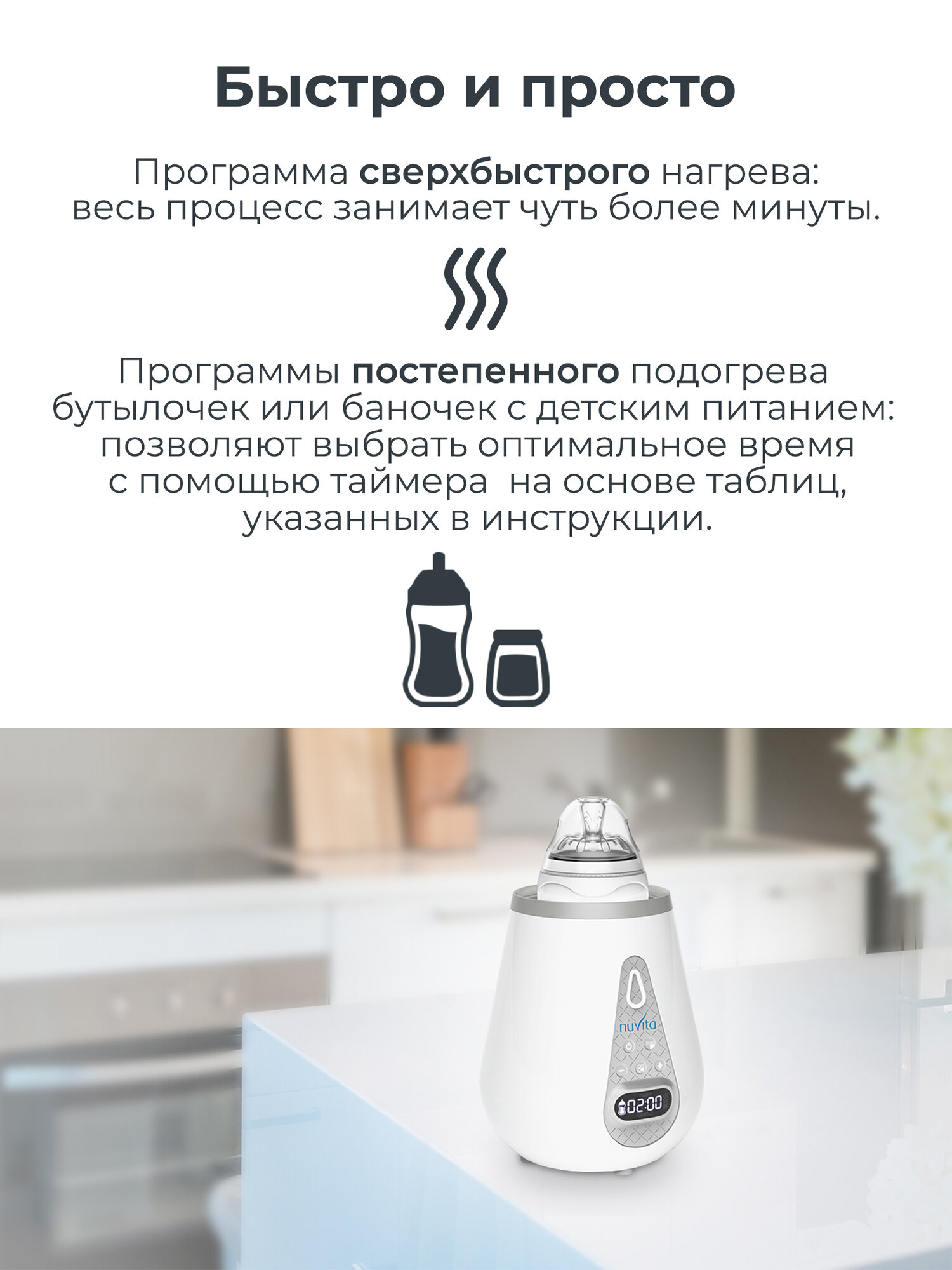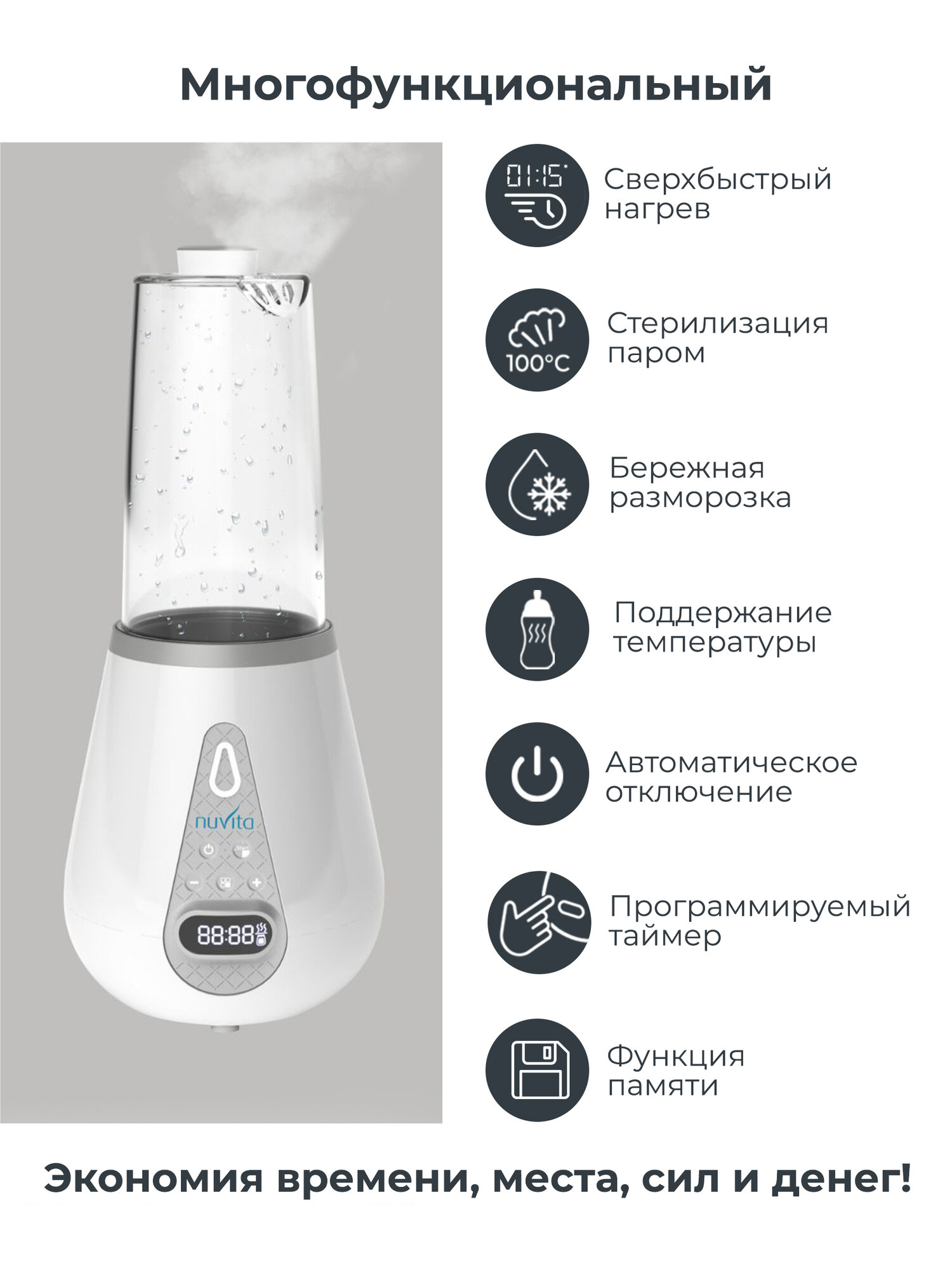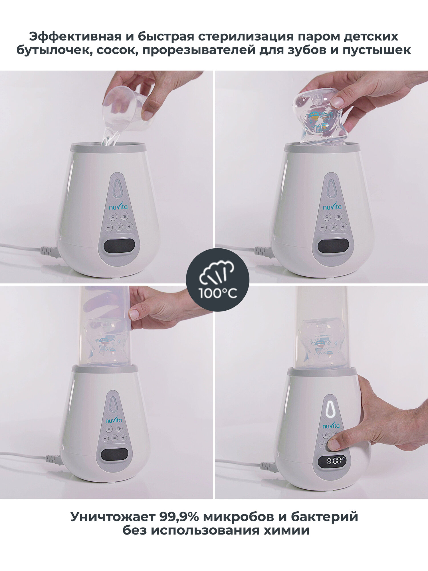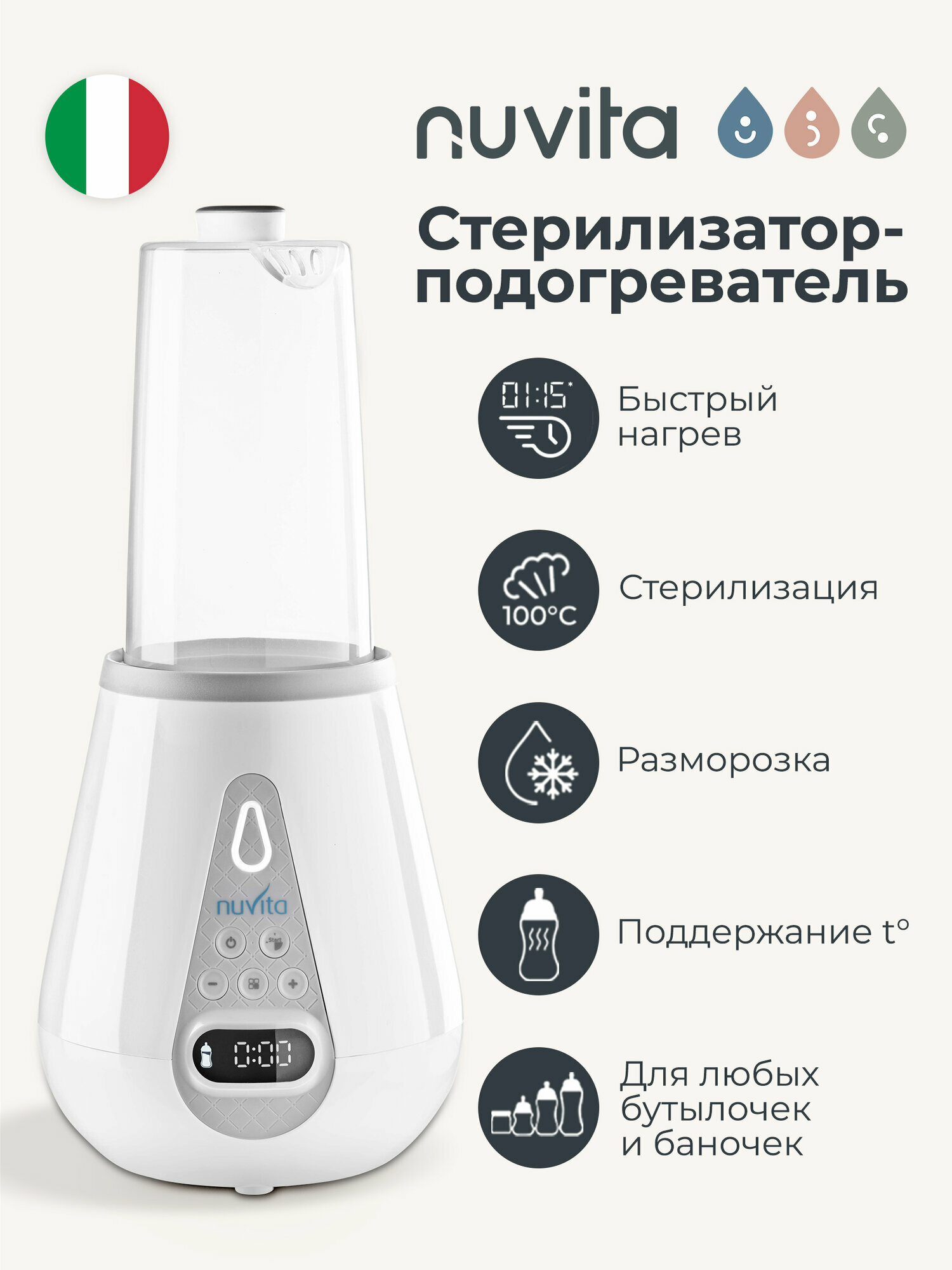 Стерилизатор подогреватель для детских бутылочек Nuvita 1170, электрический, 2 в 1 интересное: