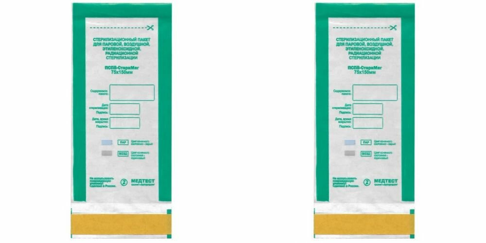 Пакеты для стерилизации пспв-стеримаг, комбинированные, 75x150, 100 штук, 2 упаковки интересное: