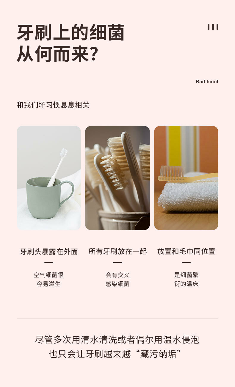 Стерилизатор для зубной щетки, портативный, розовый