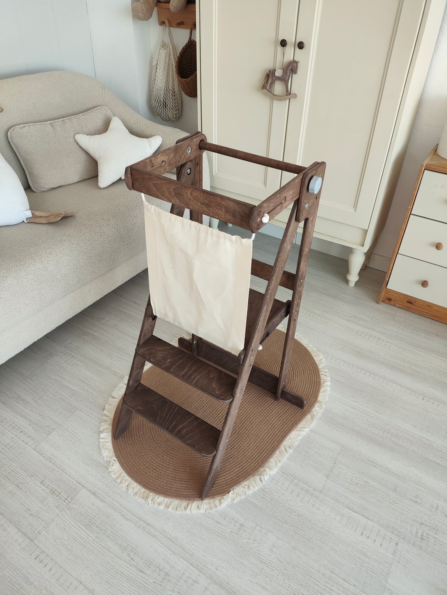 Башня помощника Монтессори (покрыта маслом) цвет дуб со съемными защитными планками