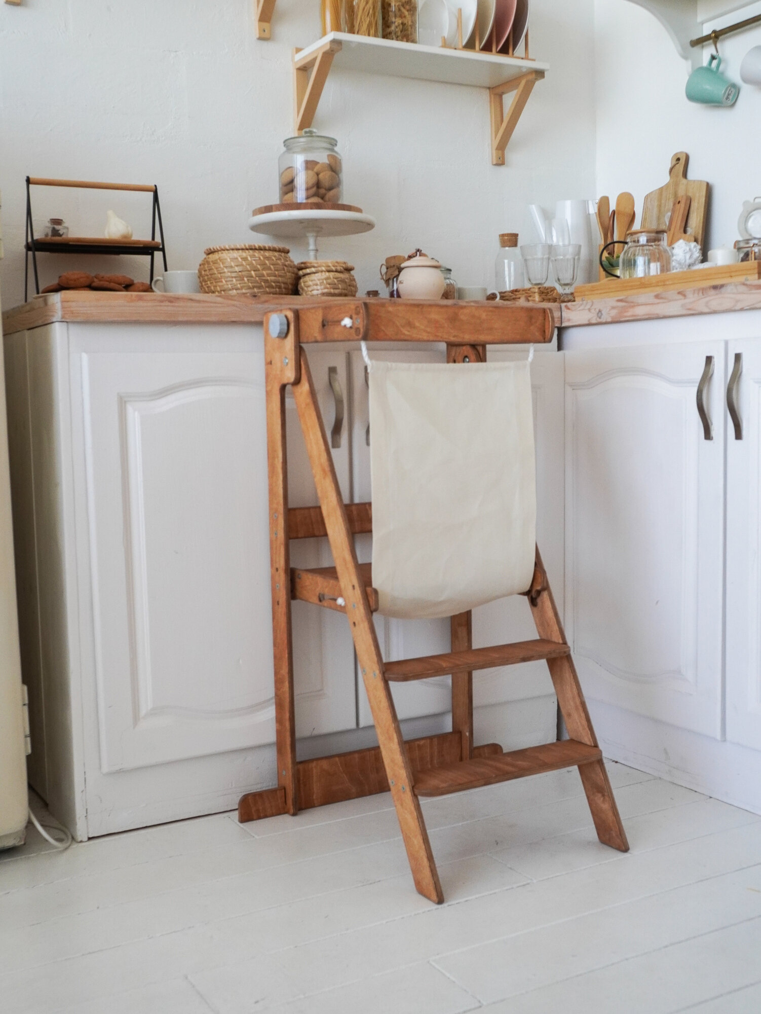 Башня помощника Монтессори (покрыта маслом) цвет дуб со съемными защитными планками