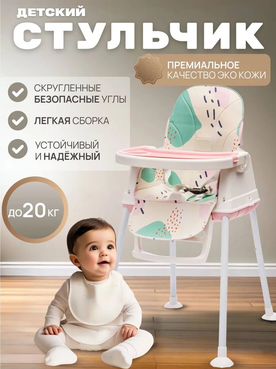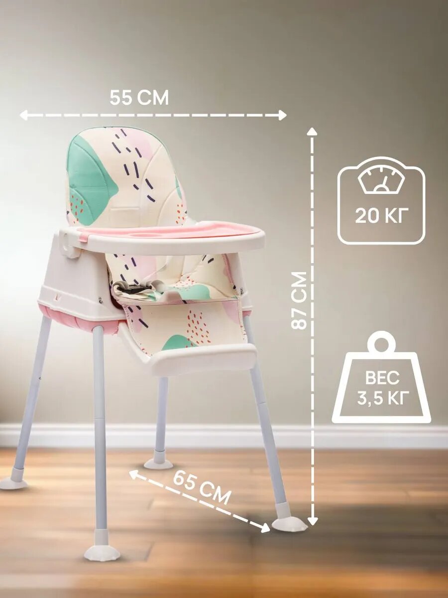 Стульчик для кормления трансформер Tommy Roll розовый, 2 уровня высоты интересное: