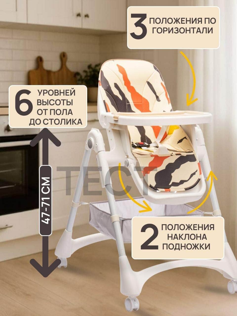 Стульчик для кормления Tommy Colours жёлтый, нагрузка до 20 кг интересное: