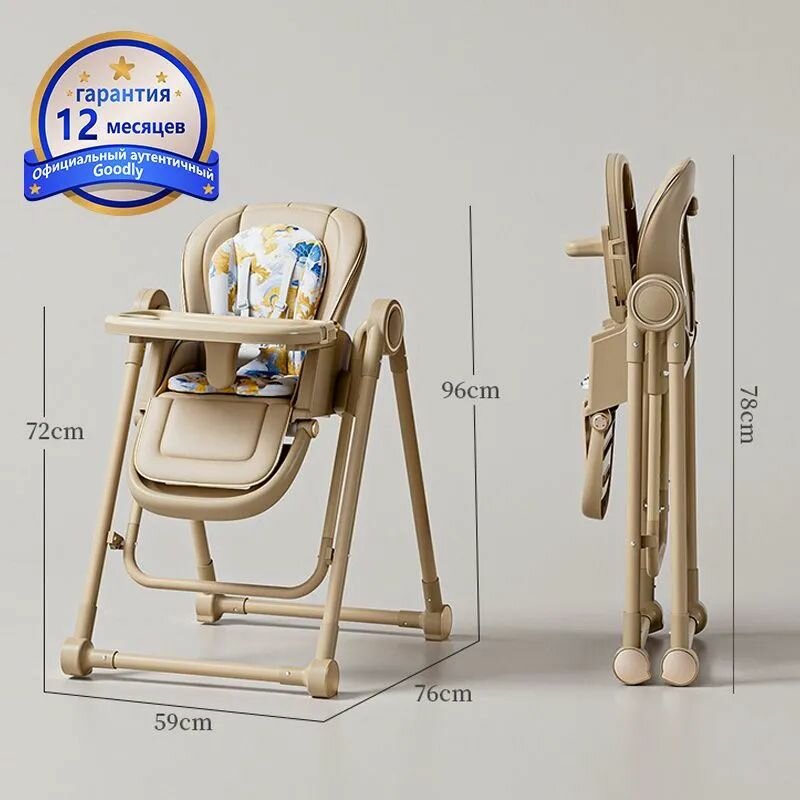 Купить Стульчик для кормления Tatamia, экокожа, коричневый, 4 колеса