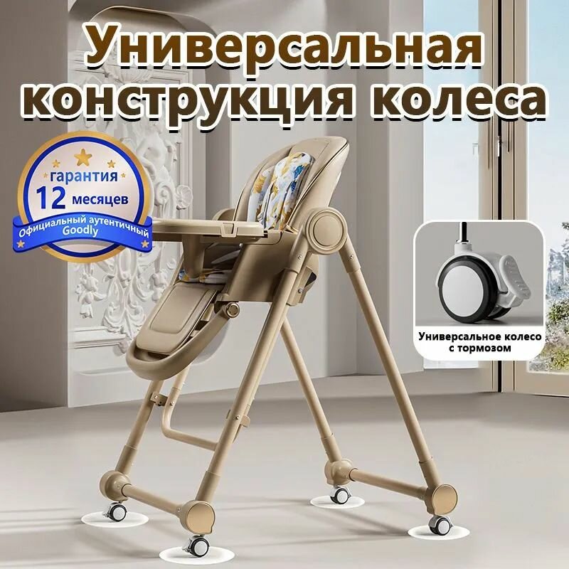 Стульчик для кормления Tatamia, экокожа, коричневый, 4 колеса интересное: