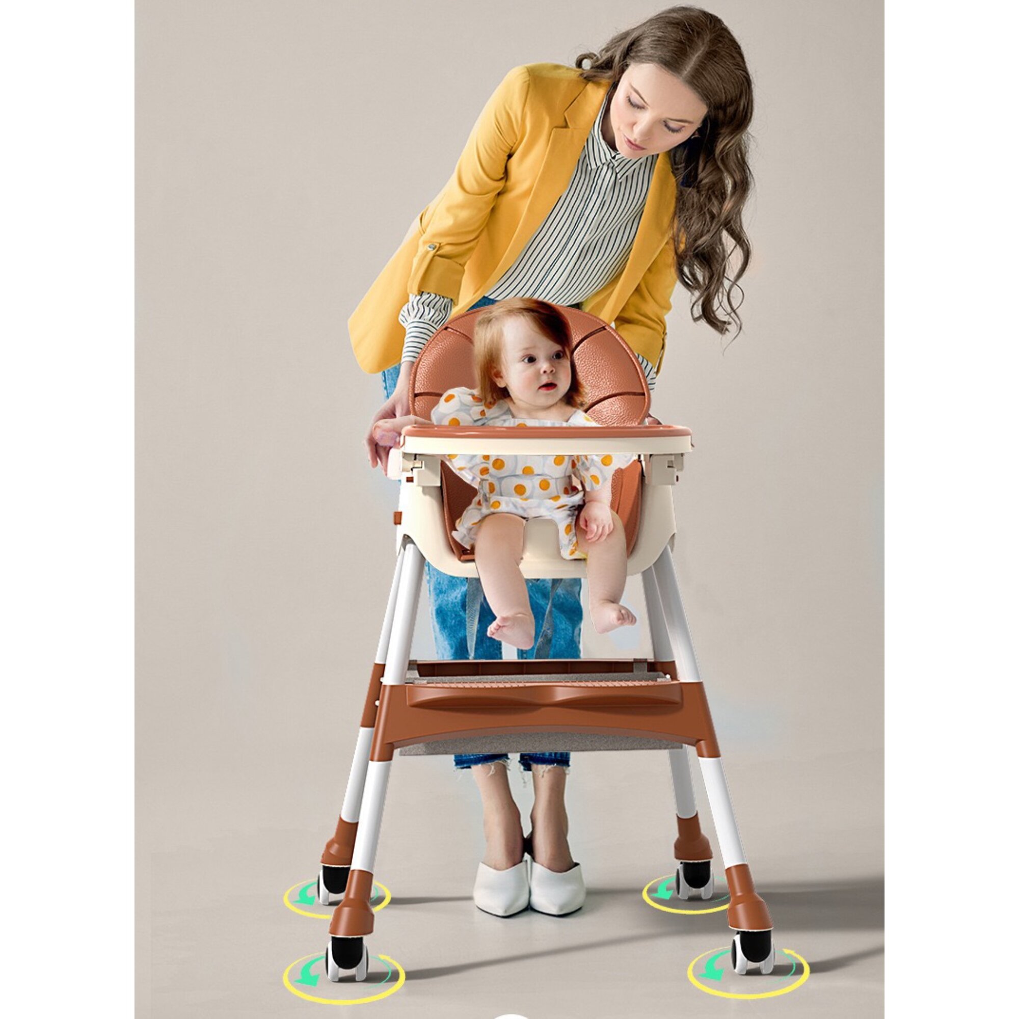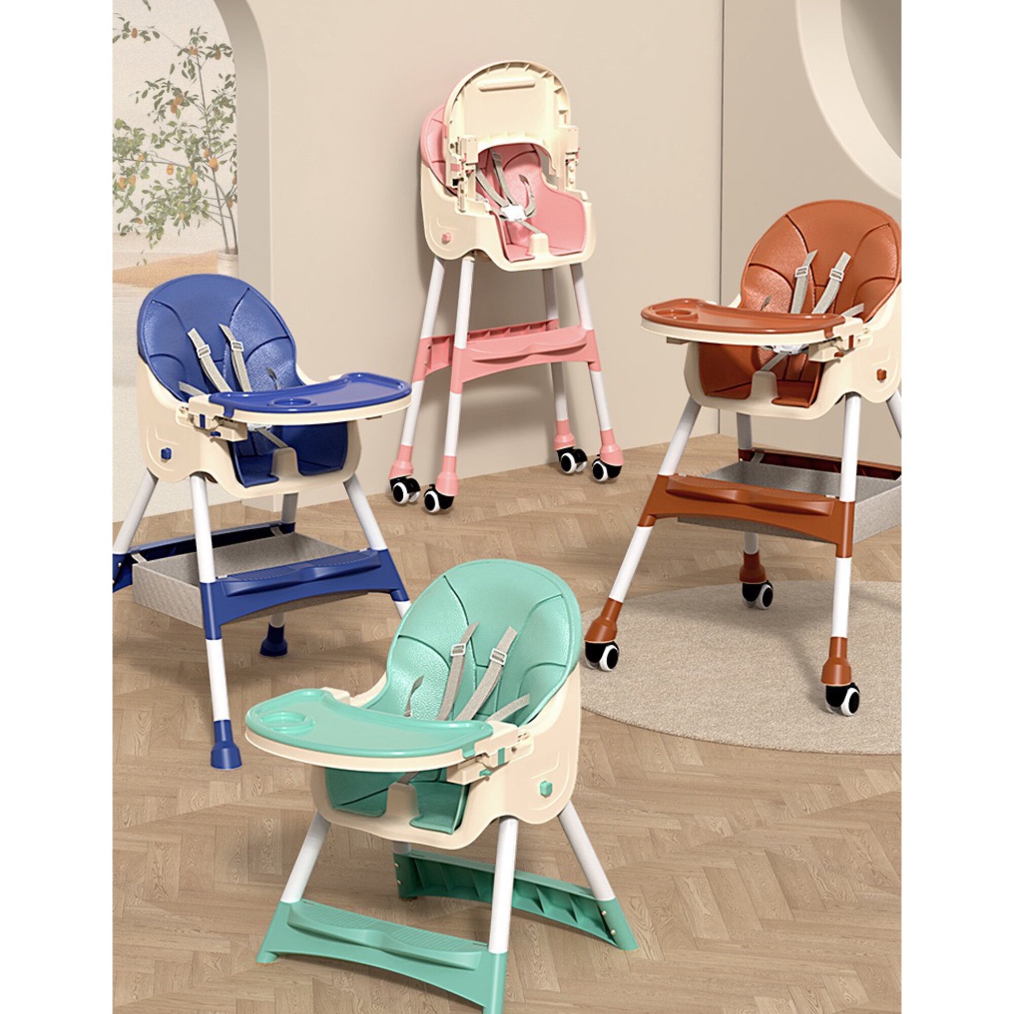 Купить Детский стульчик для кормления ребенка, складной, с колесиками, с качалкой, с корзиной для игрушек и двойной столешницей