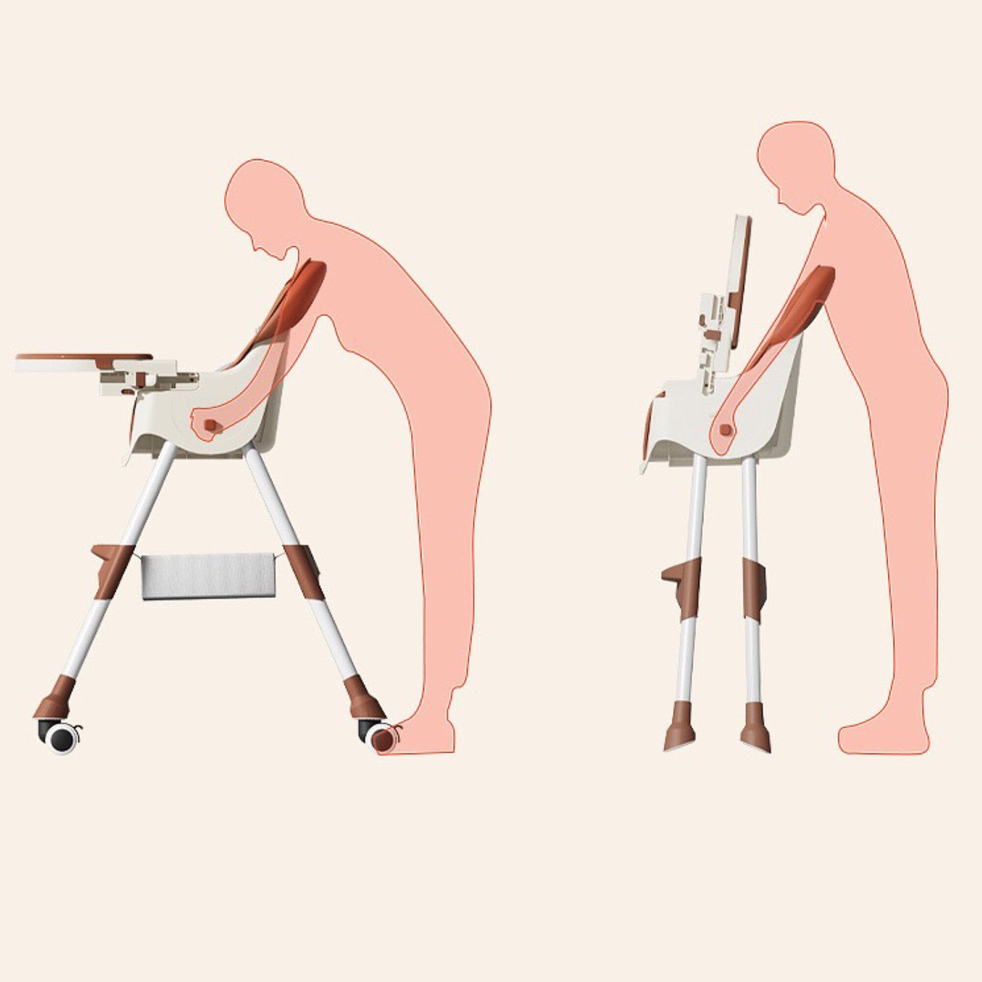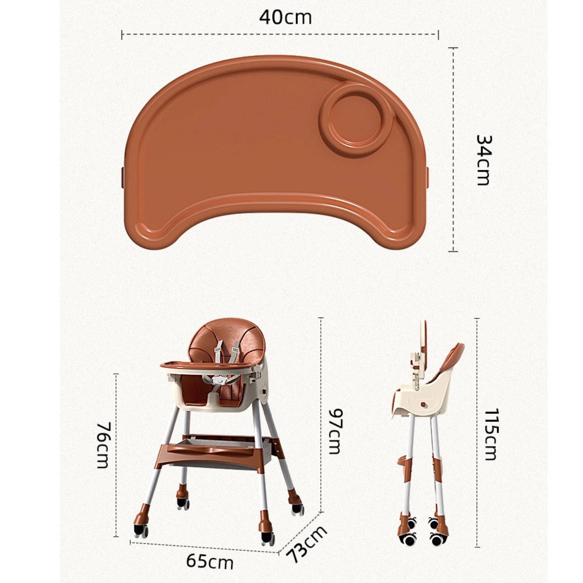 Детский стульчик для кормления ребенка, складной, с колесиками, с корзиной для игрушек и двойной столешницей