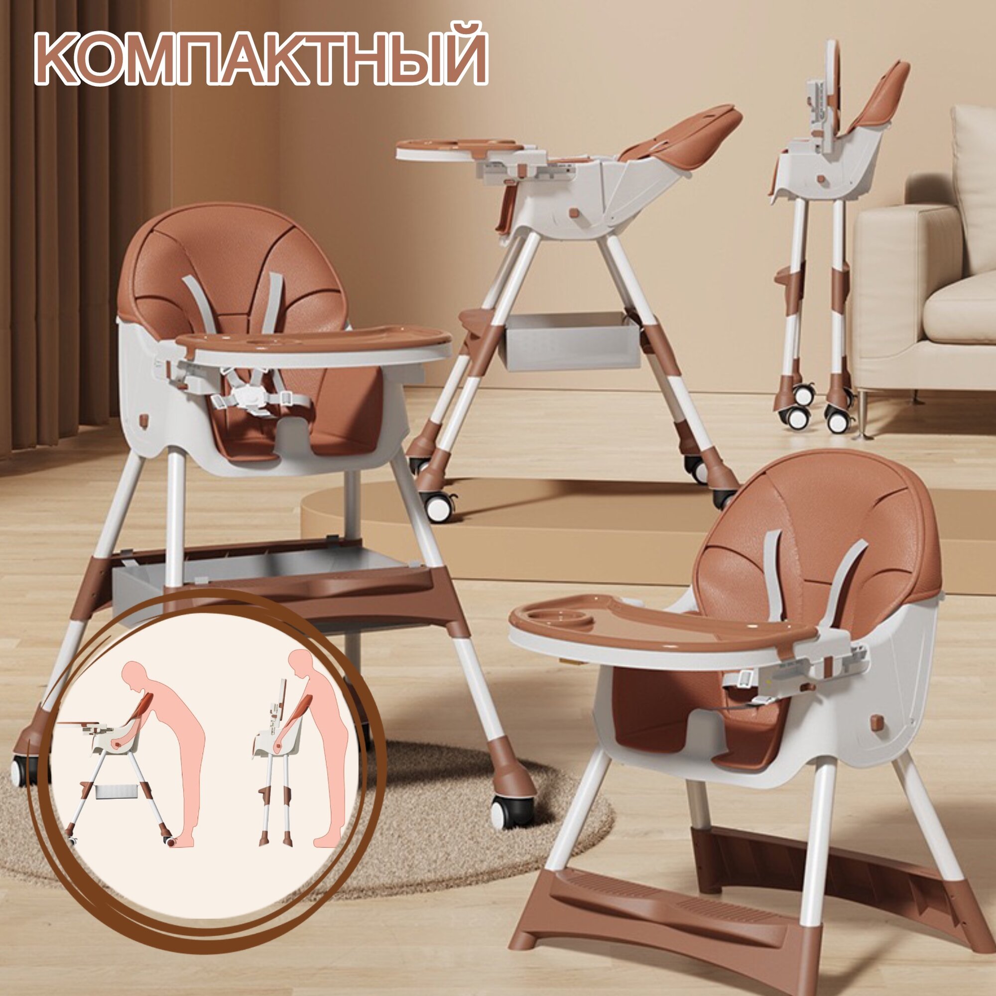 Детский стульчик для кормления ребенка, складной, с колесиками, с качалкой, с корзиной для игрушек и двойной столешницей интересное: