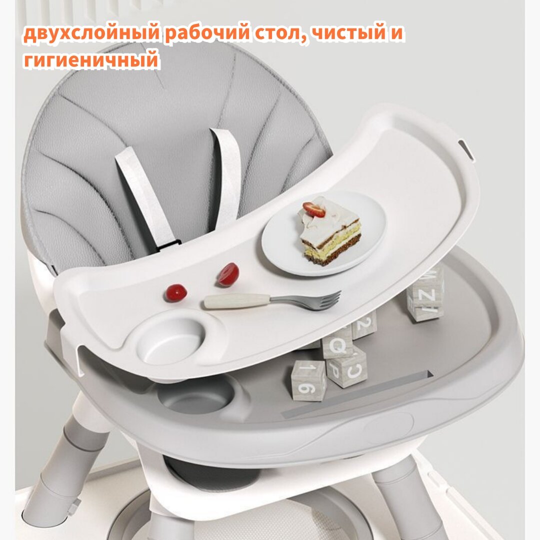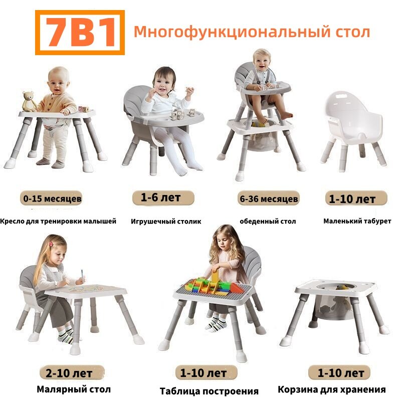 Стульчик для кормления 7 в 1, высокий детский стул для кормления со столиком для детей 1-8лет интересное: