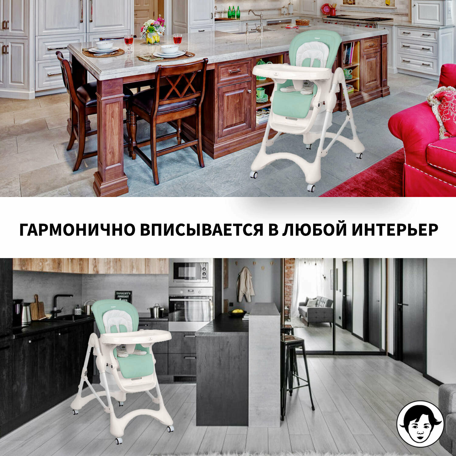 Стульчик для кормления на колесиках Tommy New Life мятный, экокожа интересное: