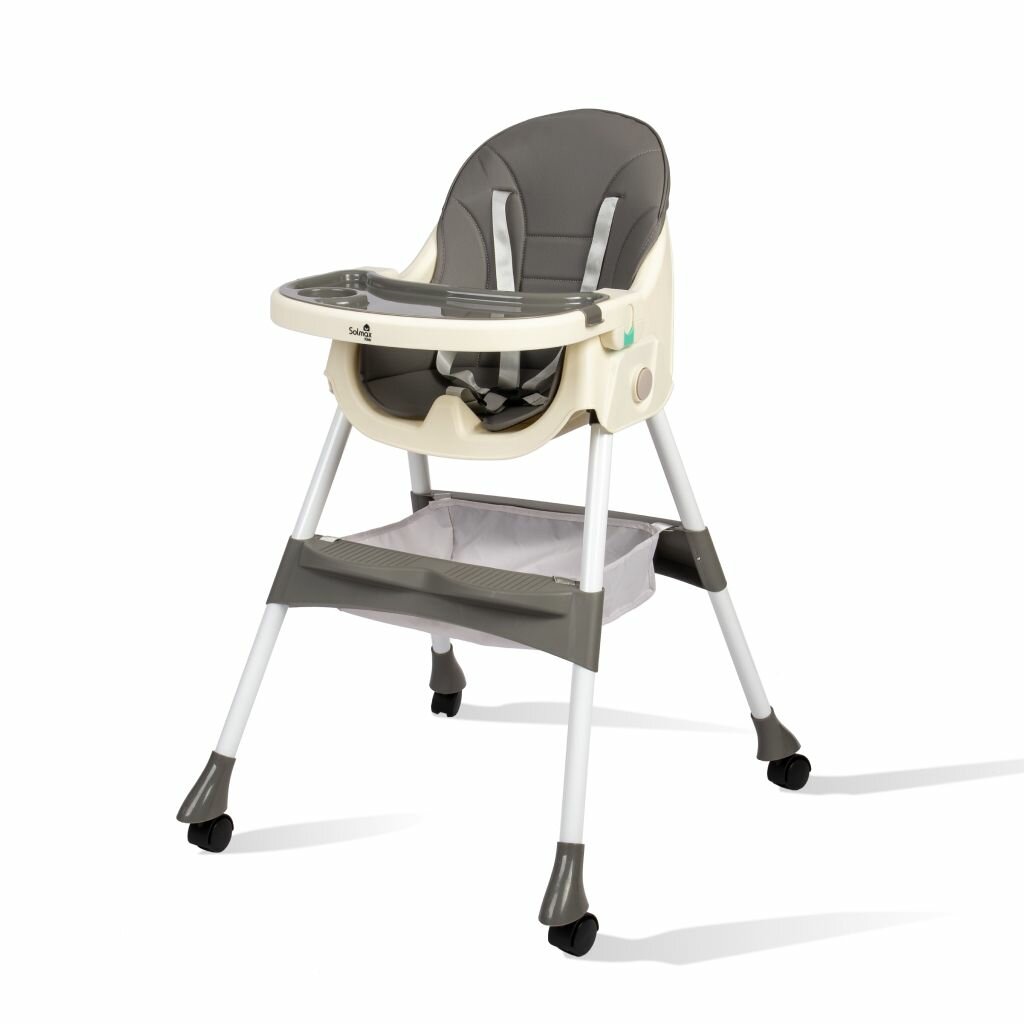 Купить Стульчик SOLMAX для кормления ребенка, складной на колесиках со съемным столом детский, серо-коричневый