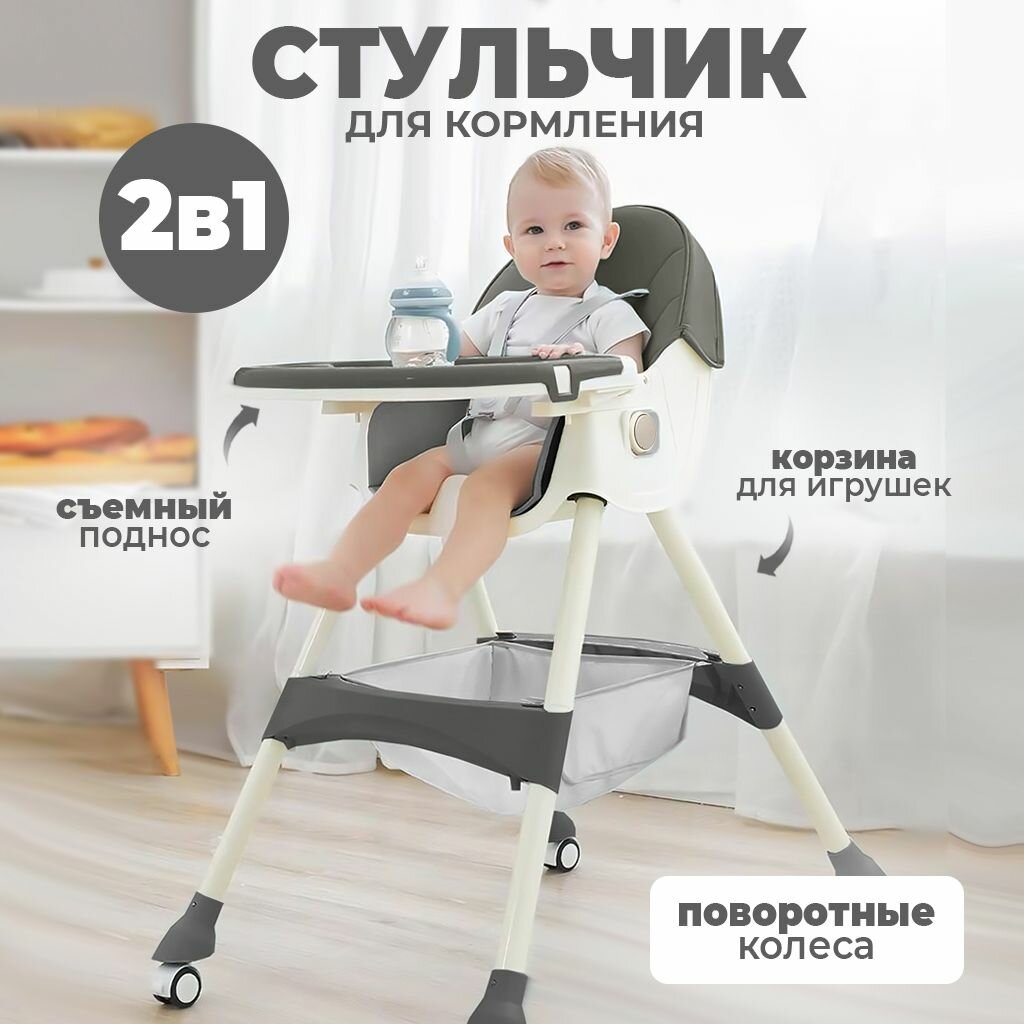 Стульчик SOLMAX для кормления ребенка, складной на колесиках со съемным столом детский, серо-коричневый интересное: