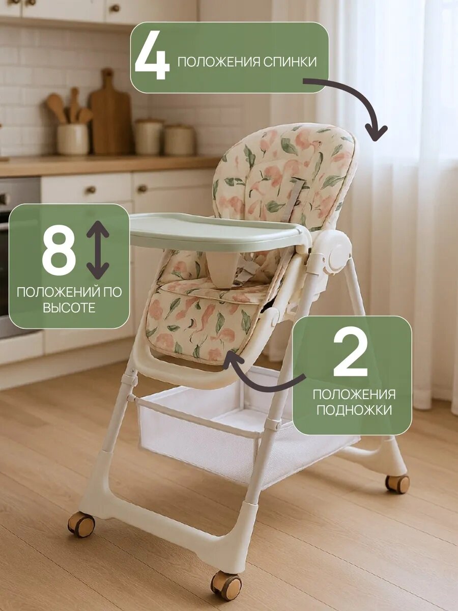Стульчик для кормления Tommy Modern зелёный, 6-35 месяцев, экокожа, до 20 кг интересное: