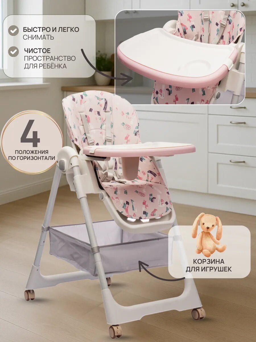 Стульчик для кормления Tommy Modern розовый, трансформер, шезлонг интересное: