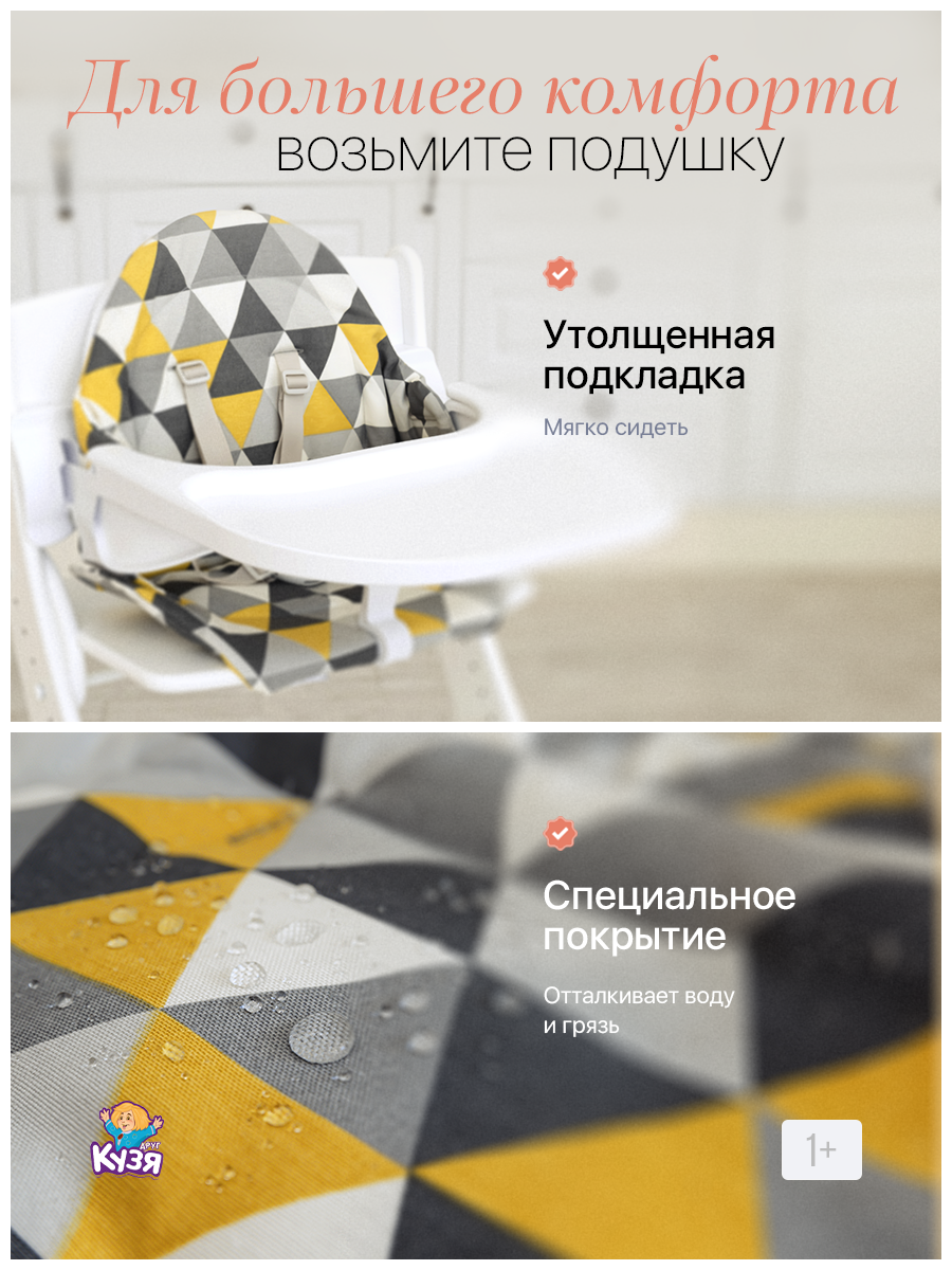 Подушка на столик-ограничитель для кормления на стул Друг Кузя
