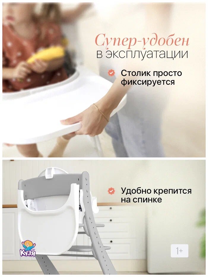 Столик-ограничитель для кормления к растущему стулу Друг Кузя, серый интересное: