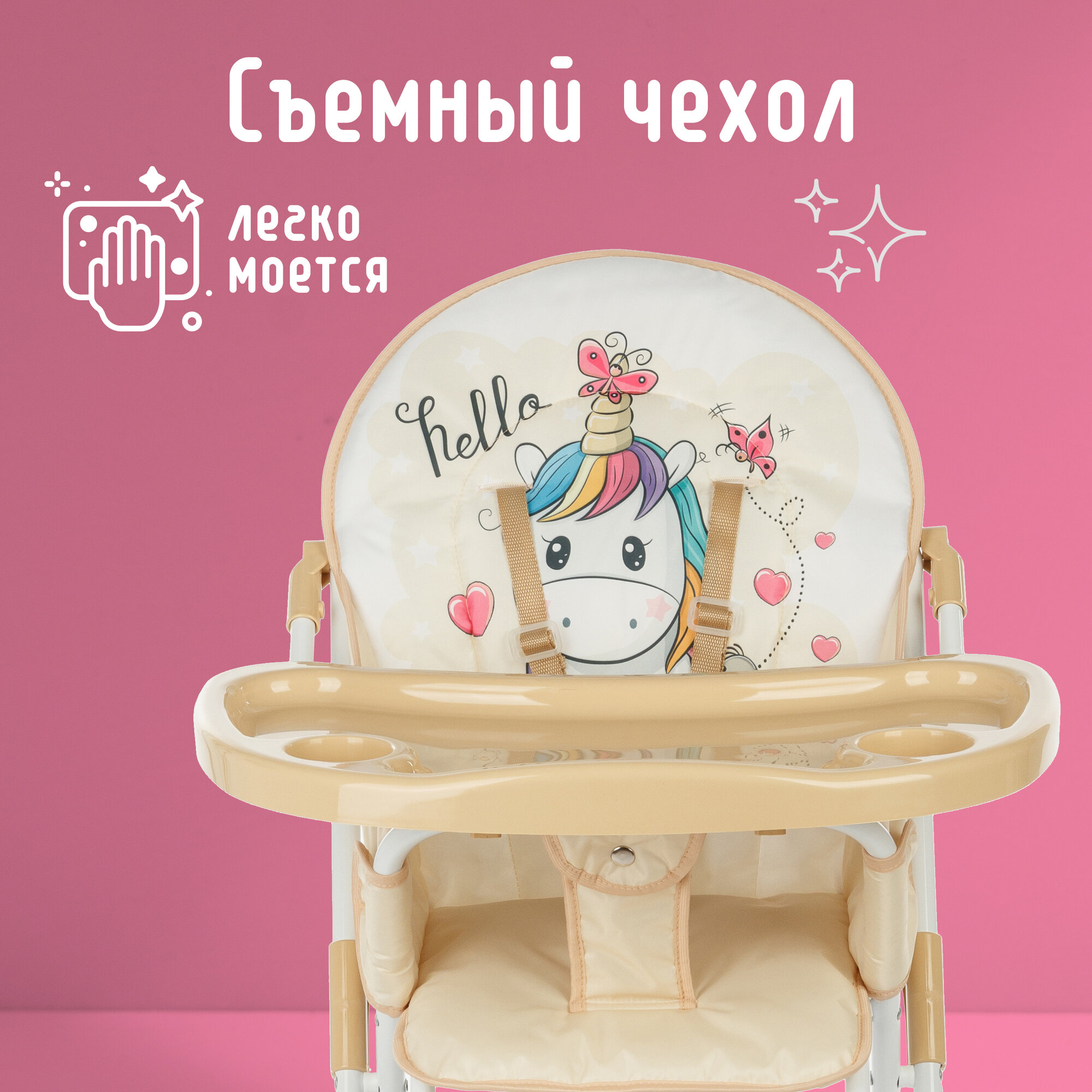 Купить Стульчик для кормления ребенка складной компактный Единорожка