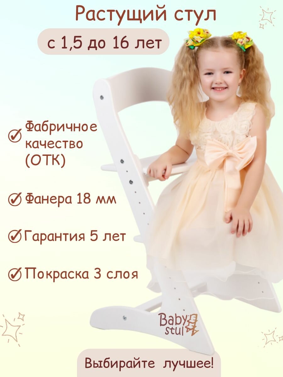 Растущий стул детский для школьника белый интересное: