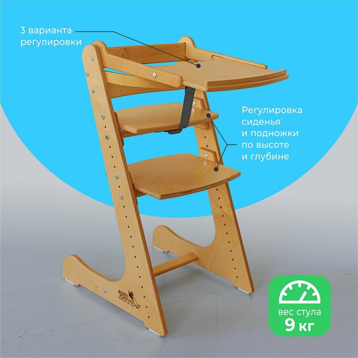 Стульчик для кормления Конек Горбунек Комфорт, растущий стул для детей со столиком и ограничителем от 6 месяцев, береза