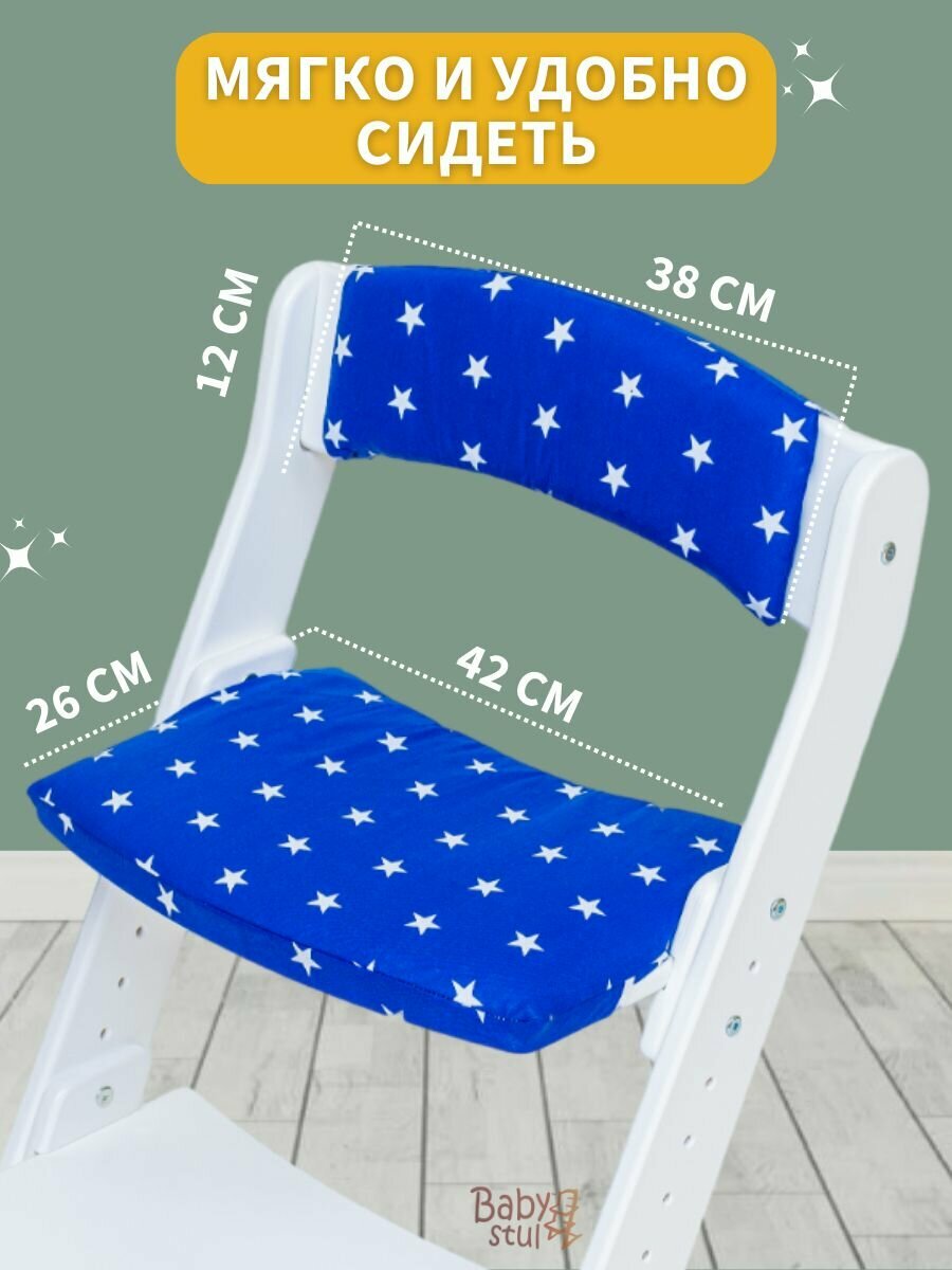 Купить Растущий стул со столиком и подушками "Синие звёзды" и ремни безопасности. Стульчик для кормления
