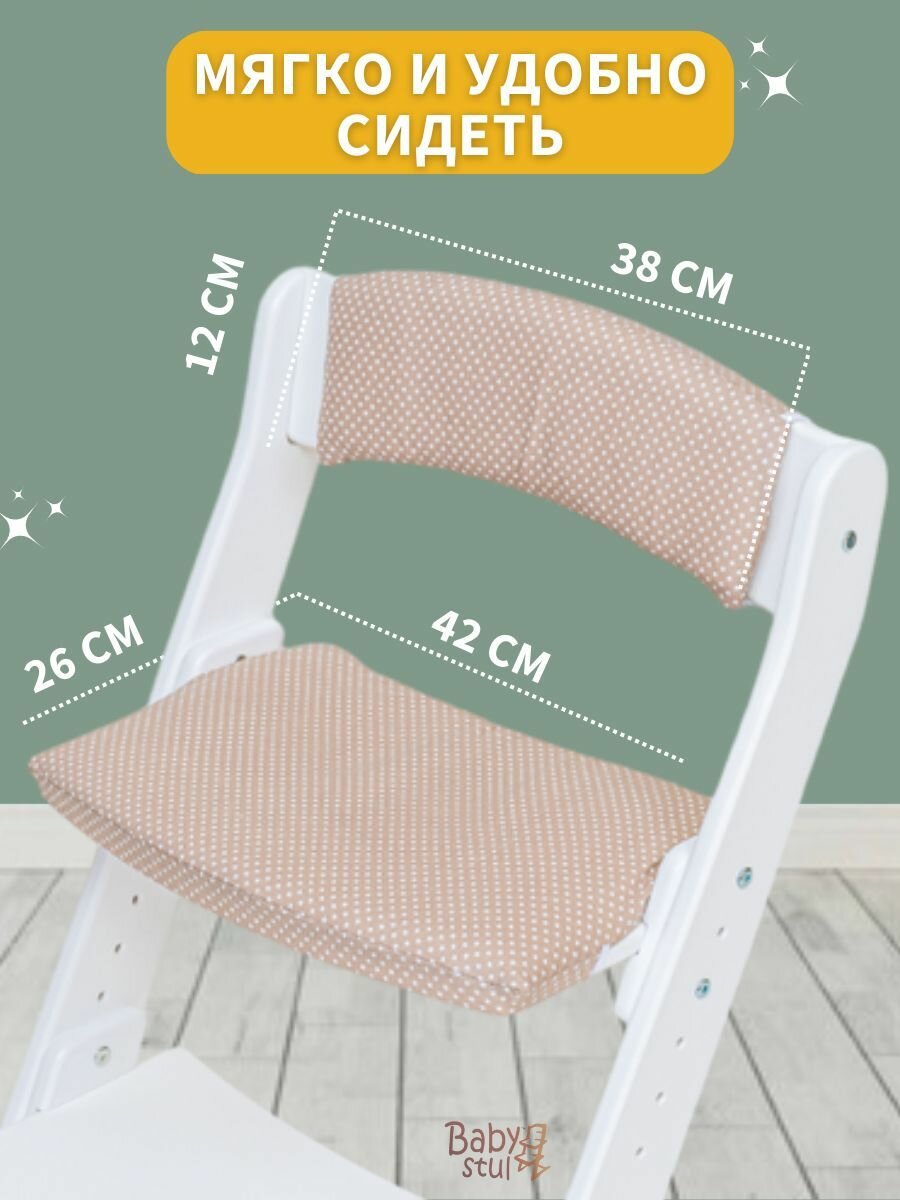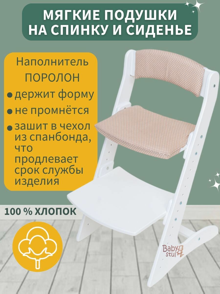 Купить Растущий стул со столиком и подушками "Горох светлый" и ремни безопасности. Стульчик для кормления