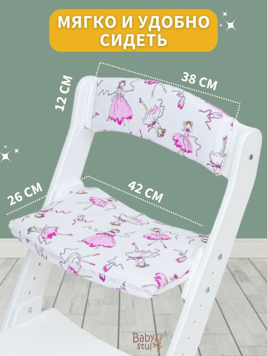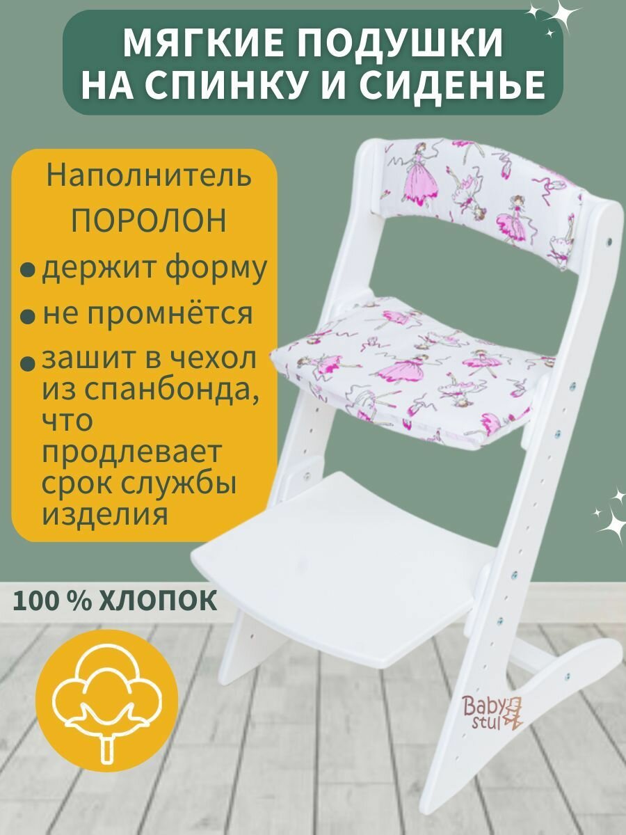 Купить Растущий стул со столиком и подушками "Балерины белые" и ремни безопасности. Стульчик для кормления