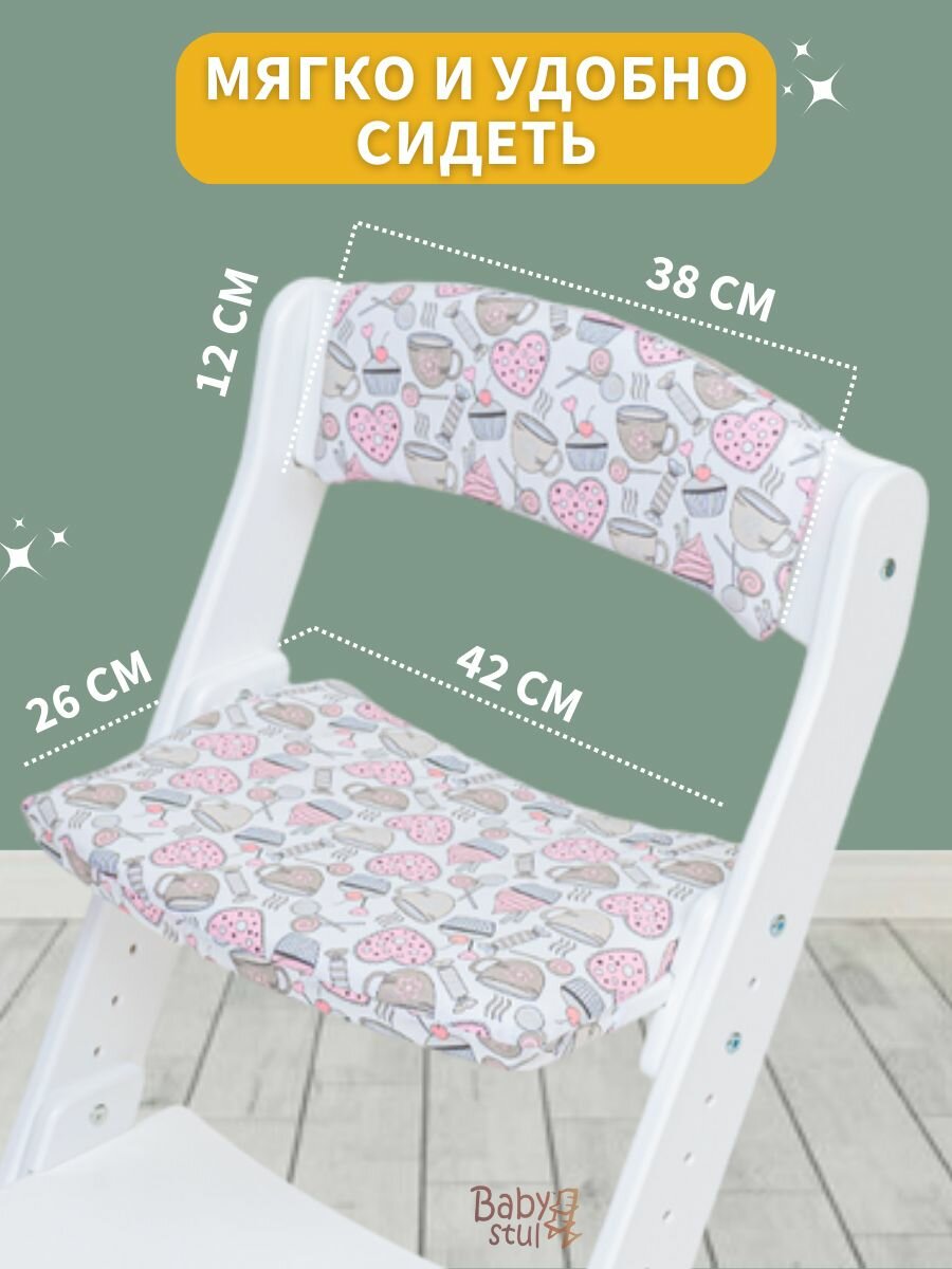 Купить Растущий стул со столиком и подушками "Конфетки" и ремни безопасности. Стульчик для кормления