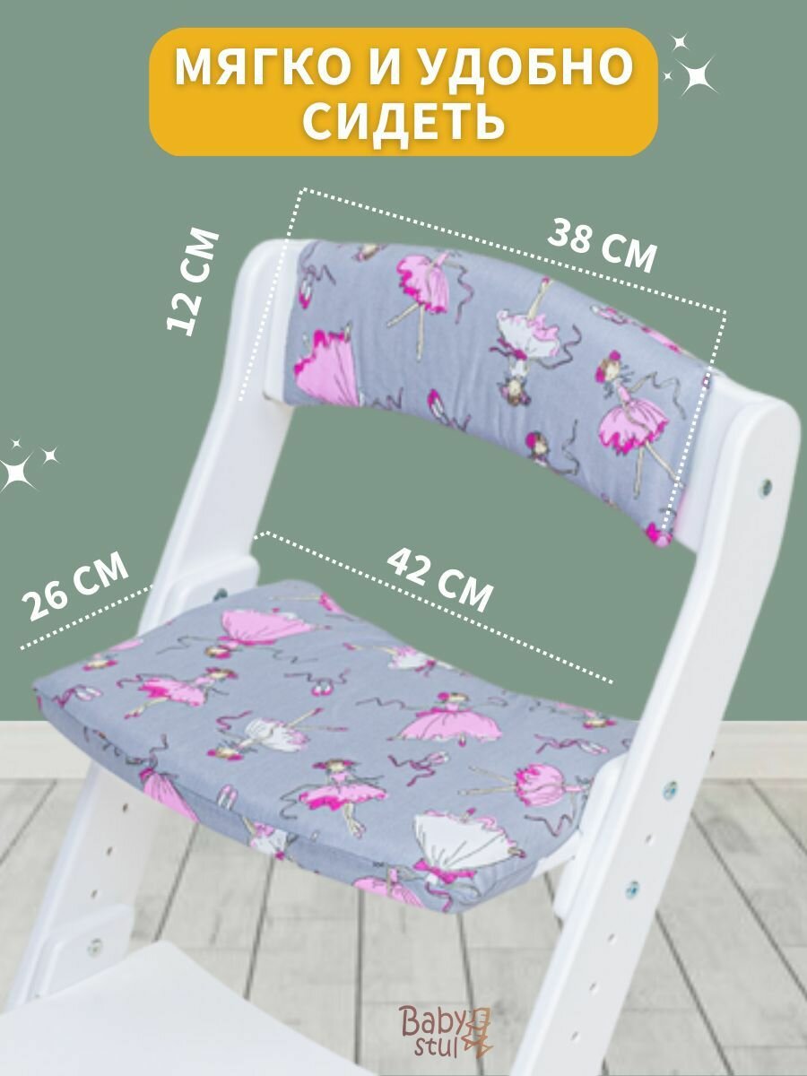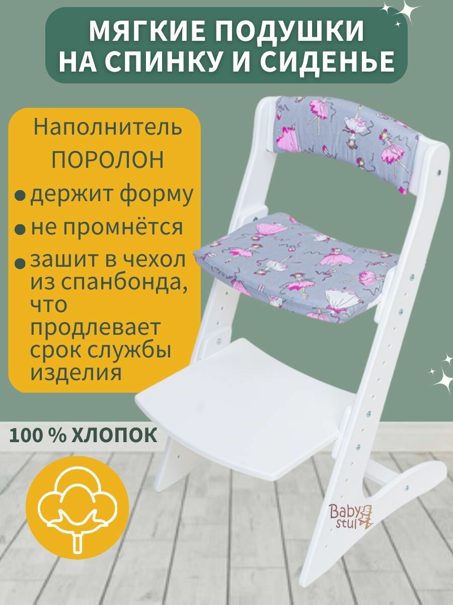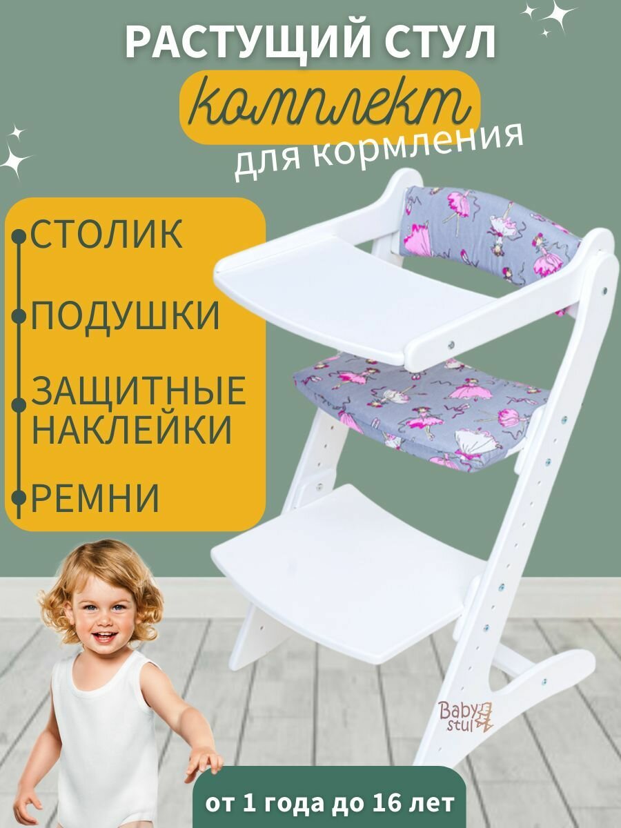 Купить Растущий стул со столиком и подушками "Балерины серые" и ремни безопасности. Стульчик для кормления