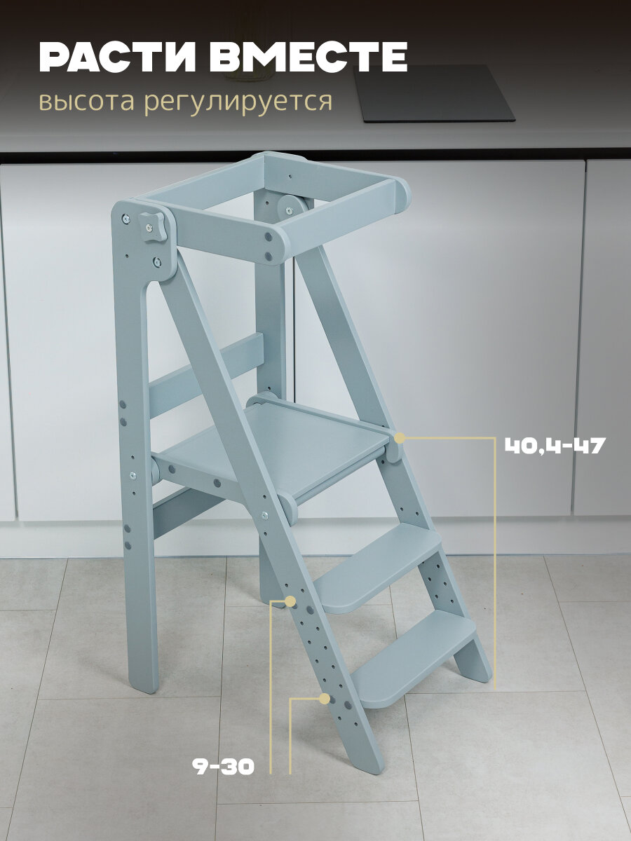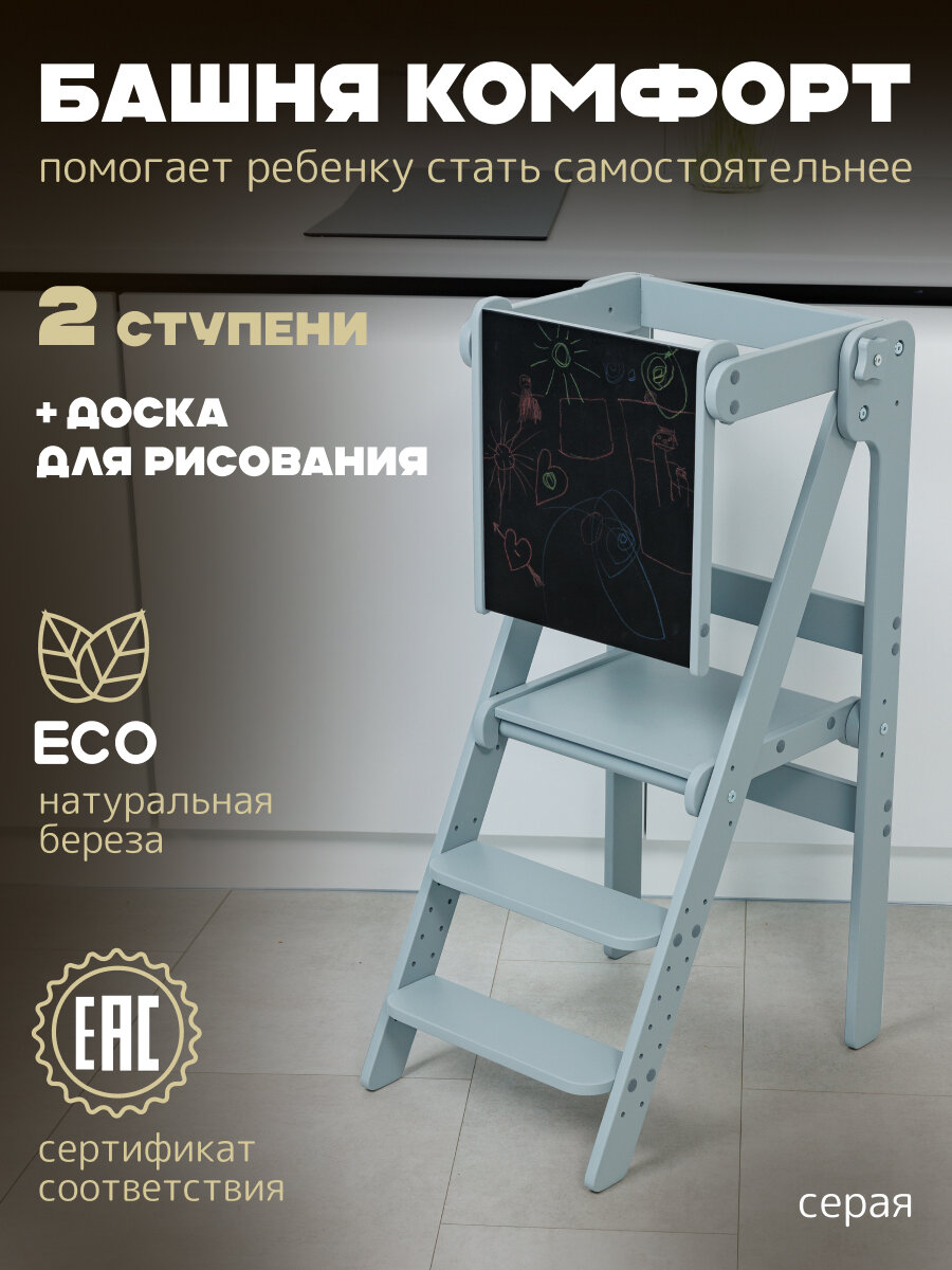 Купить Башня помощника Монтессори "КОМФОРТ" + доска-ограничитель "Pappado", цвет серый, 40х52х90 см