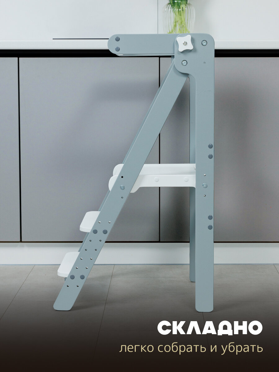 Купить Башня помощника Монтессори "КОМФОРТ" + доска-ограничитель "Pappado", цвет серый + белый, 40х52х90 см