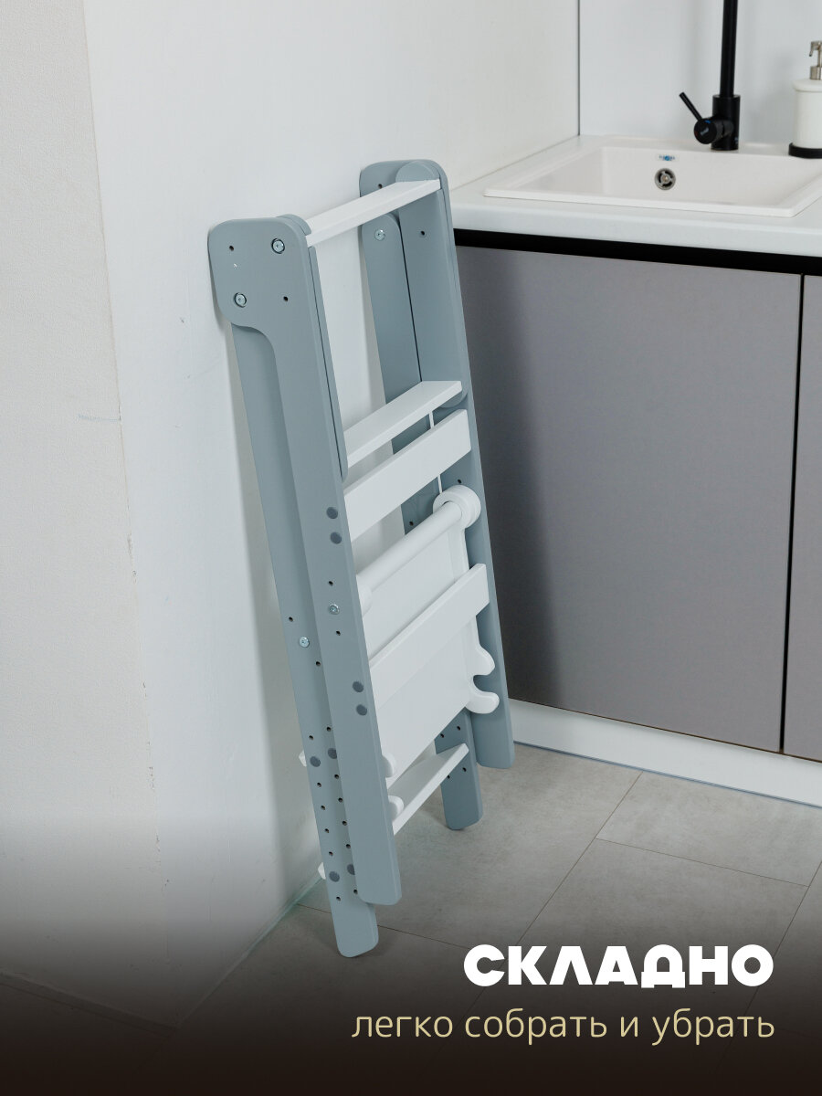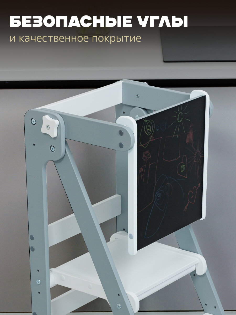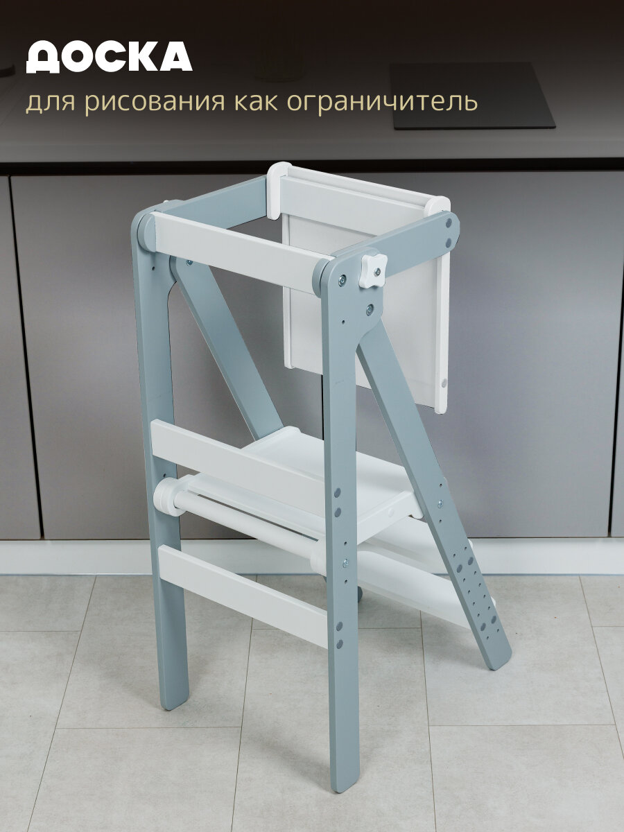 СохранитьБашня помощника Монтессори "КОМФОРТ" + доска-ограничитель "Pappado", цвет серый + белый, 40х52х90 см интересное: