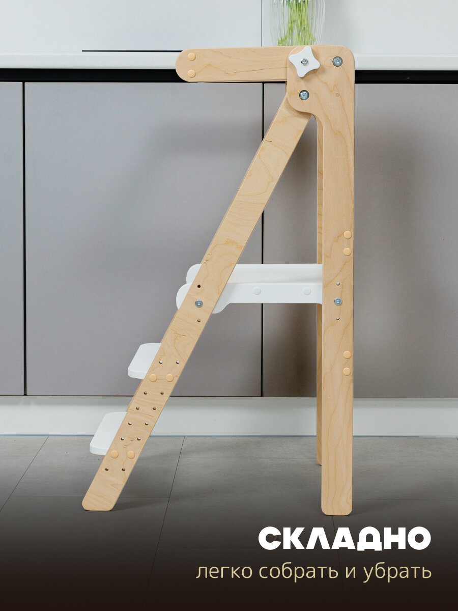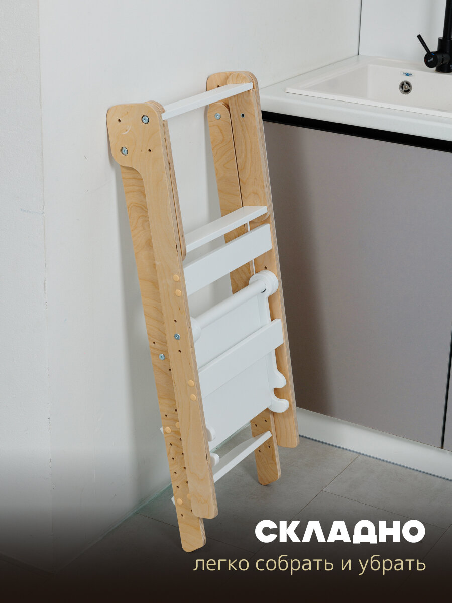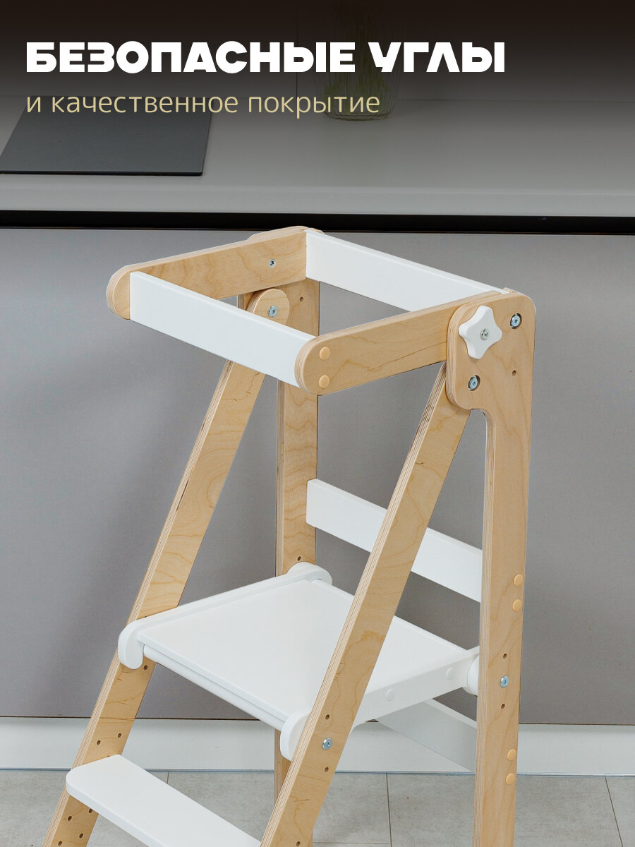 Башня помощника Монтессори "КОМФОРТ" + доска-ограничитель "Pappado", цвет белый + лак, 40х52х90 см