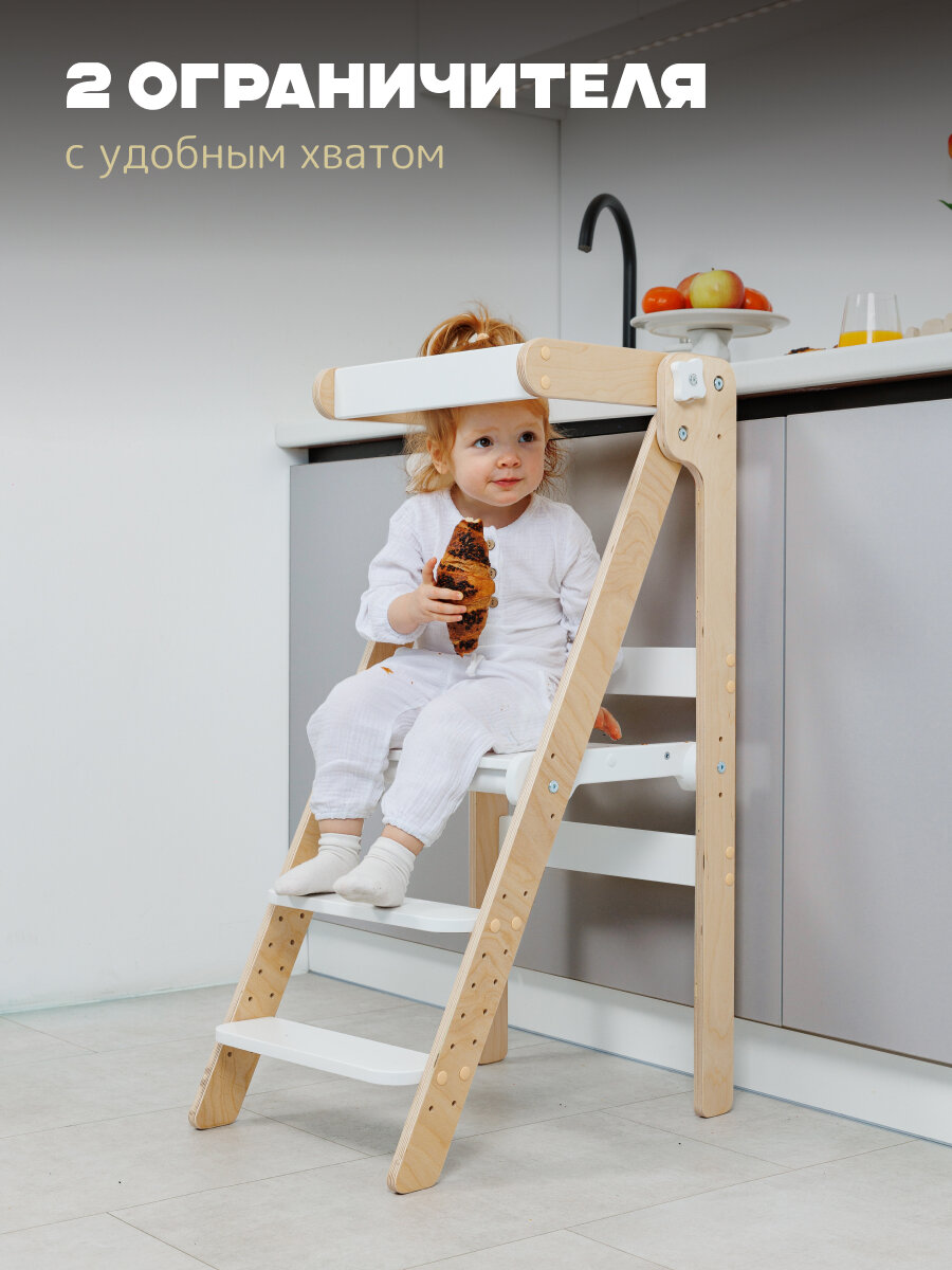Башня помощника Монтессори "КОМФОРТ" + доска-ограничитель "Pappado", цвет белый, 40х52х90 см