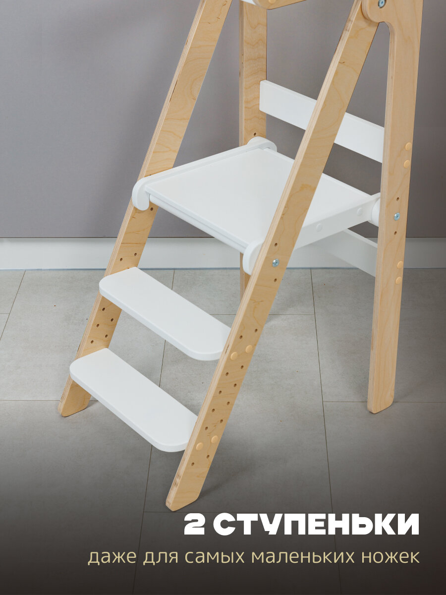 СохранитьБашня помощника Монтессори "КОМФОРТ" без доски-ограничителя "Pappado", цвет белый + лак, 40х52х90 см интересное: