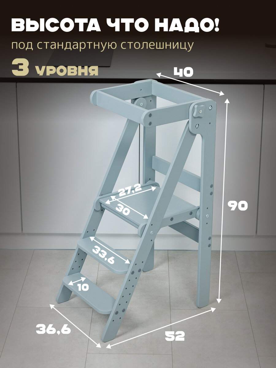 Башня помощника Монтессори "КОМФОРТ" + доска-ограничитель "Pappado", цвет серый, 40х52х90 см