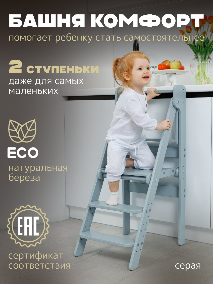 СохранитьБашня помощника Монтессори "КОМФОРТ" без доски-ограничителя "Pappado", цвет серый, 40х52х90 см интересное: