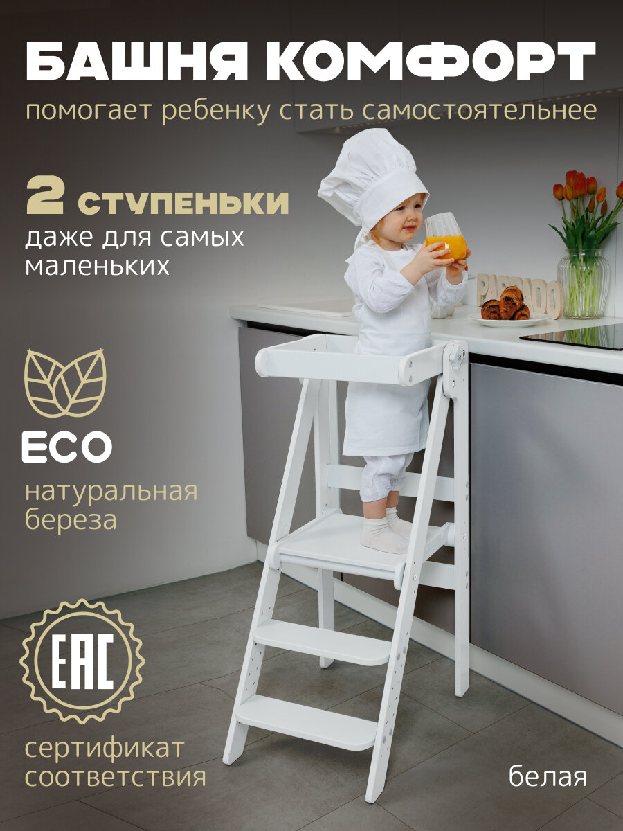 СохранитьБашня помощника Монтессори "КОМФОРТ" без доски-ограничителя "Pappado", цвет белый, 40х52х90 см интересное: