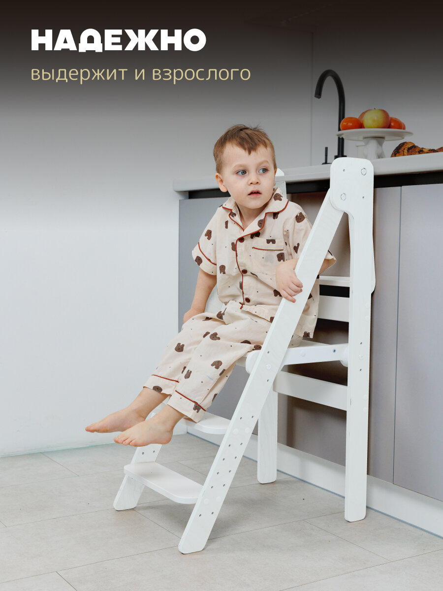 Башня помощника Монтессори "КОМФОРТ" + доска-ограничитель "Pappado", цвет белый + лак, 40х52х90 см