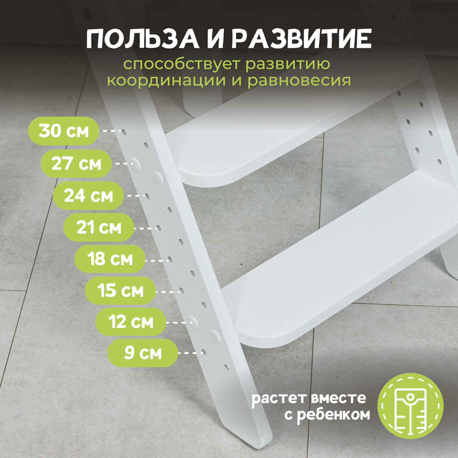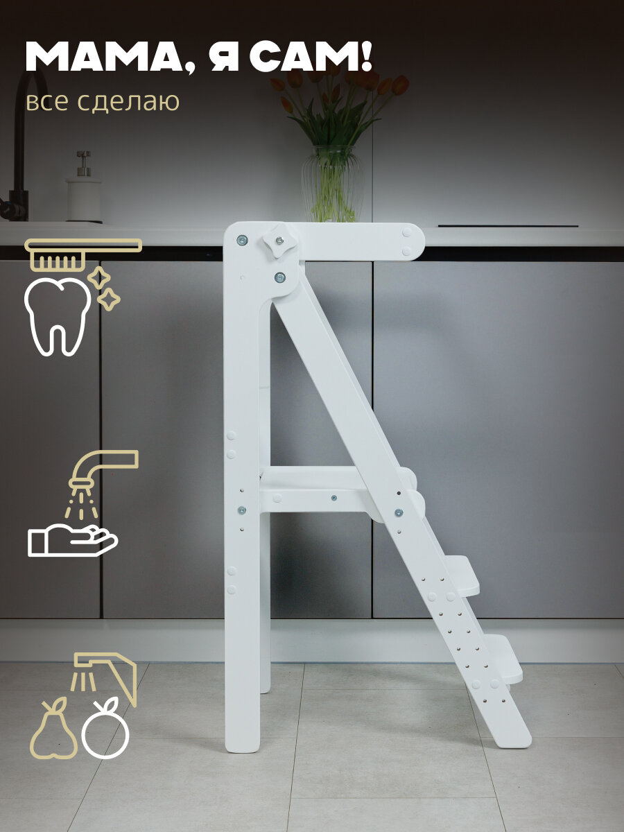 Башня помощника Монтессори "КОМФОРТ" + доска-ограничитель "Pappado", цвет белый, 40х52х90 см