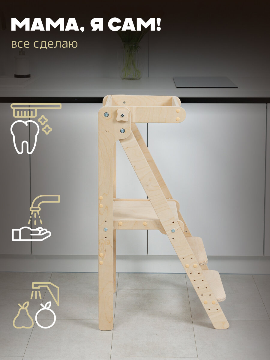 Купить Башня помощника Монтессори "КОМФОРТ" без доски-ограничителя "Pappado", шлифованная, 40х52х90 см