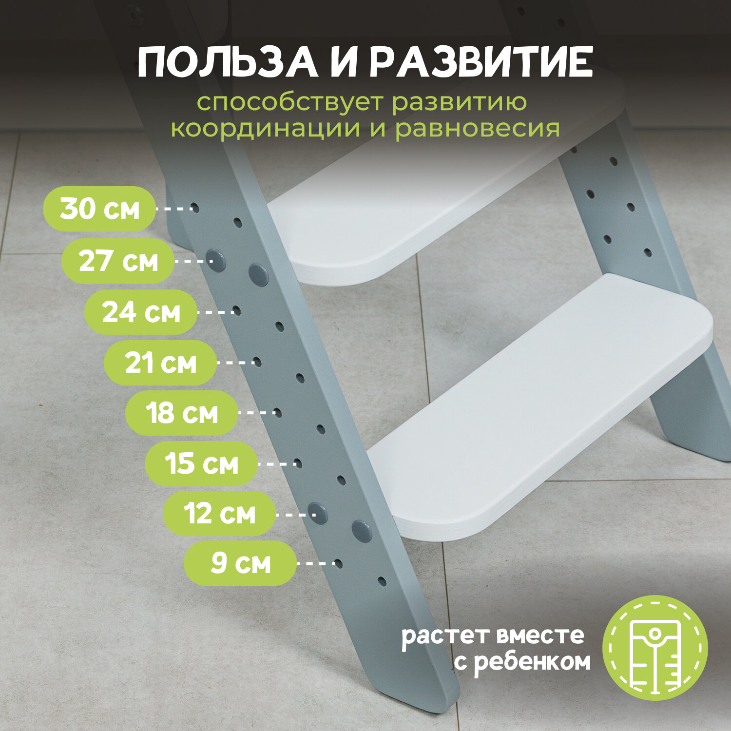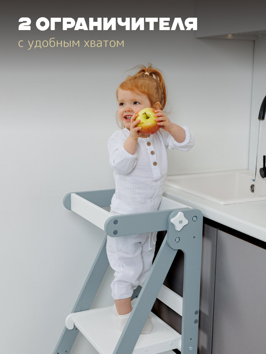 Башня помощника Монтессори "КОМФОРТ" + доска-ограничитель "Pappado", цвет серый + белый, 40х52х90 см