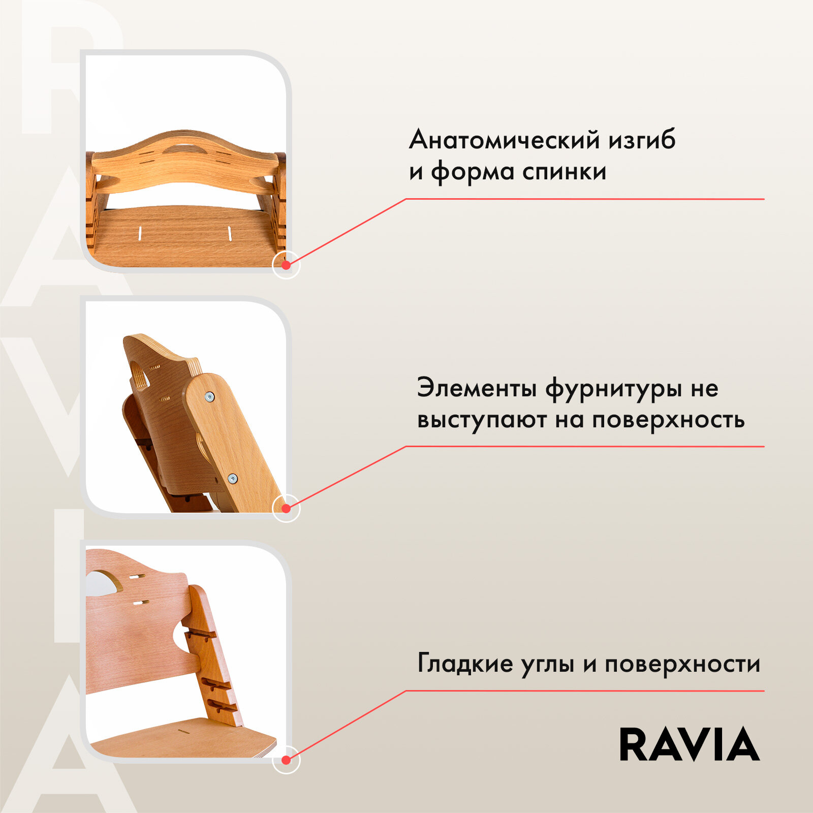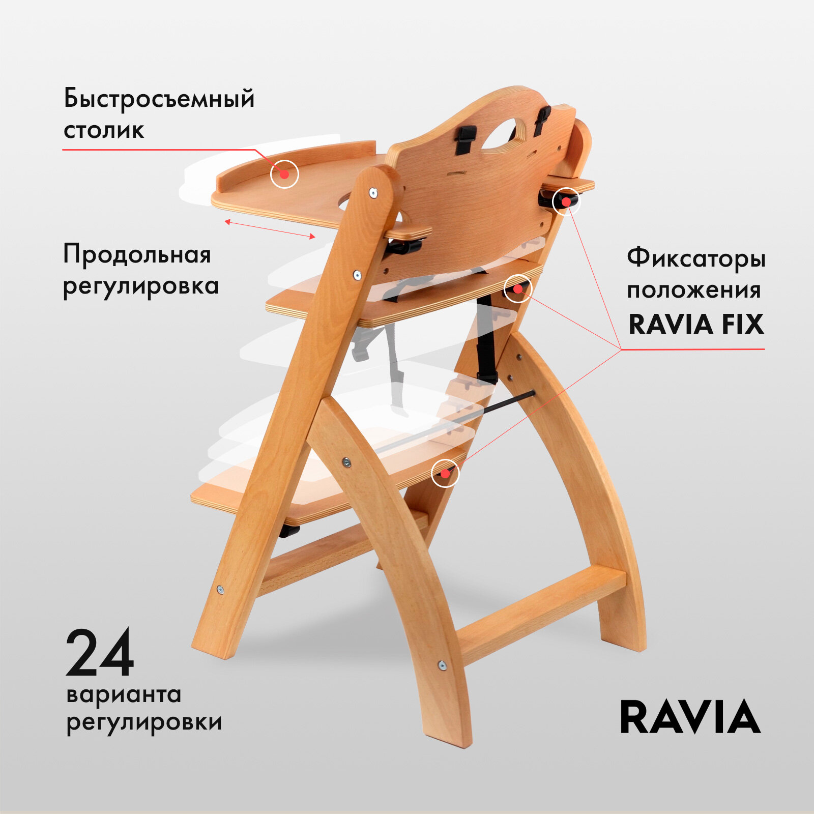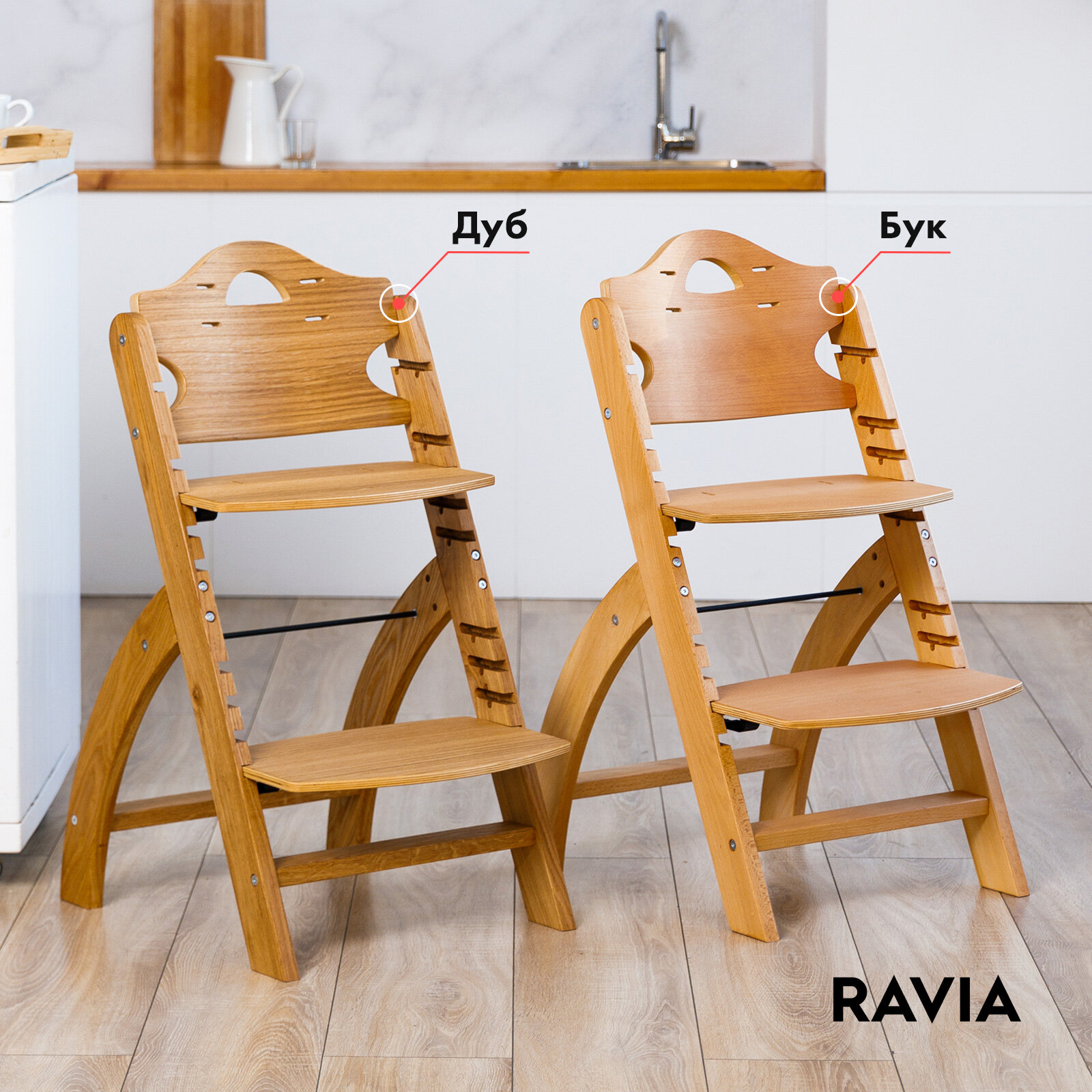 Стульчик для кормления RAVIA KIDS / растущий / от 9 мес / массив бука интересное: