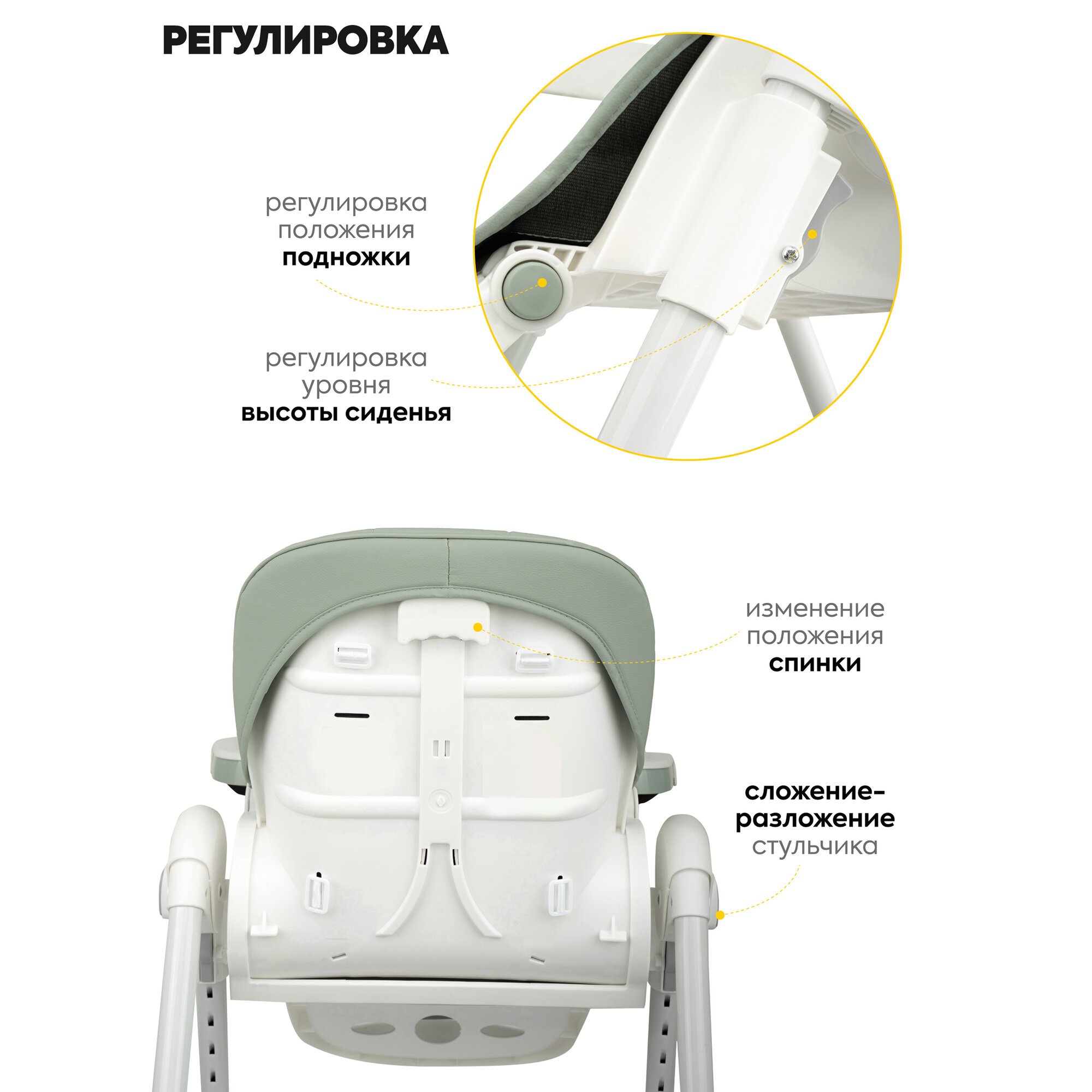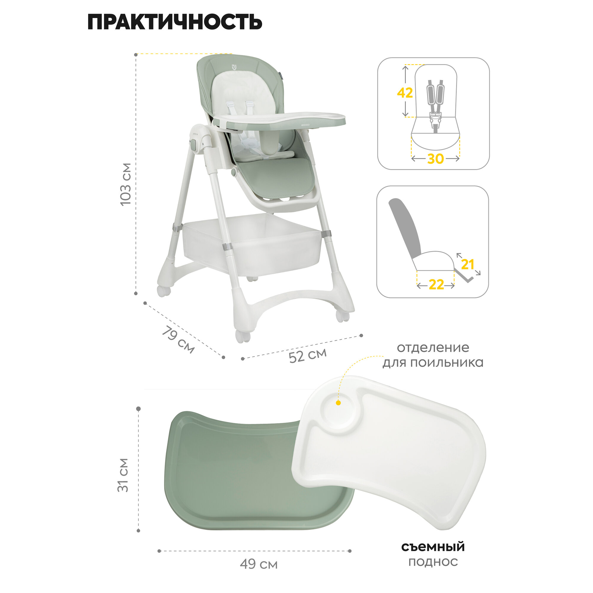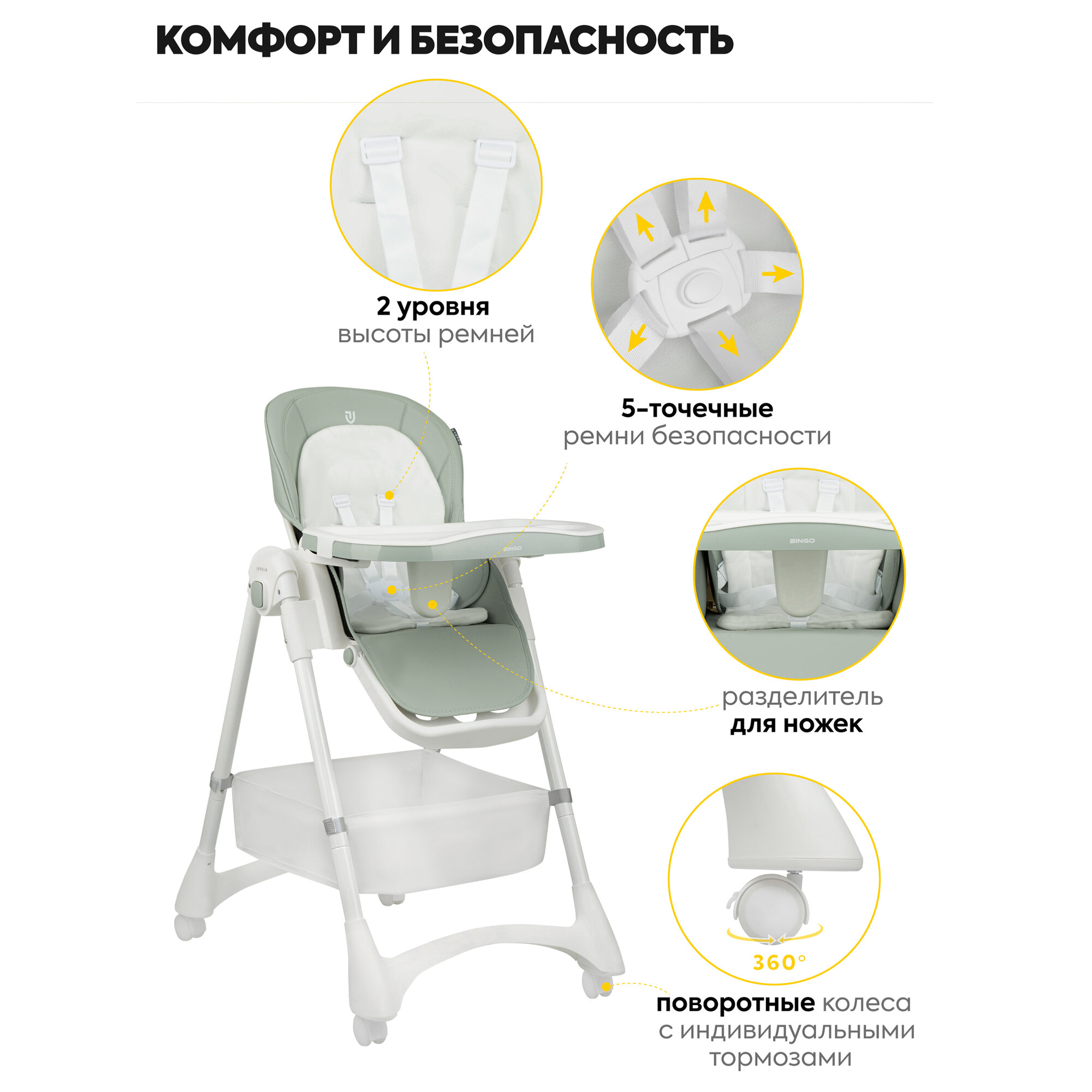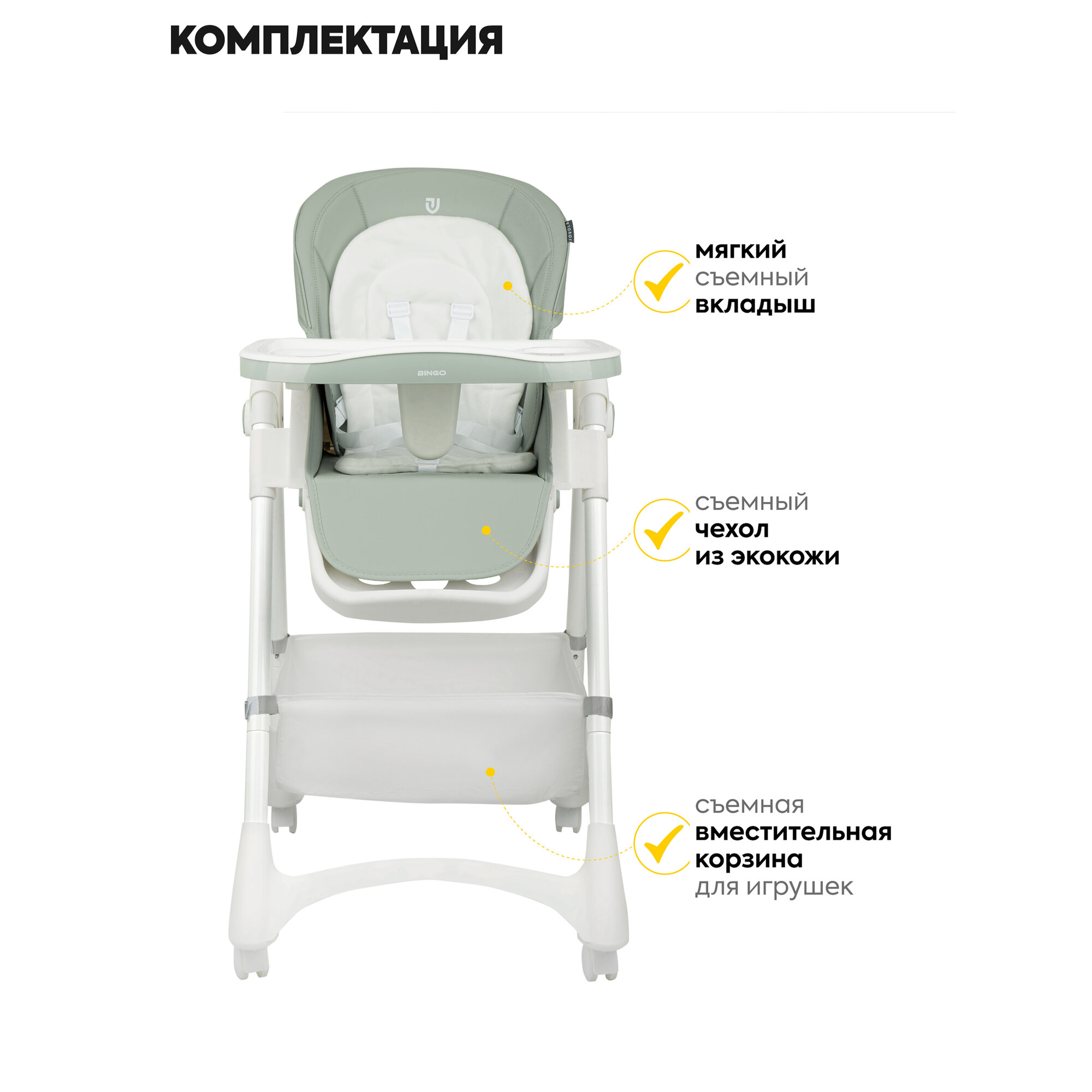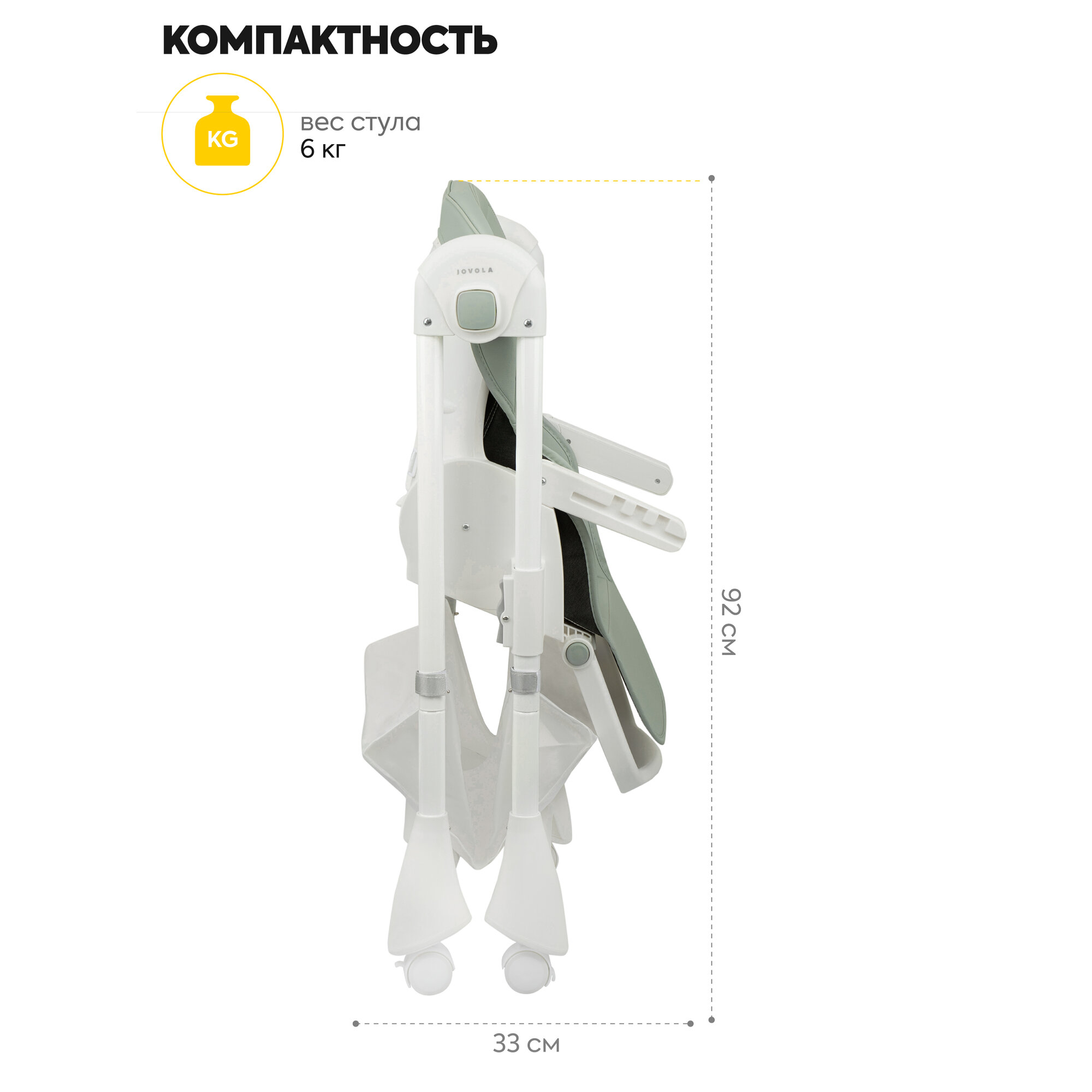 Стульчик для кормления ребенка Jovola Bingo от 6 до 36 месяцев, зелено-серый интересное: