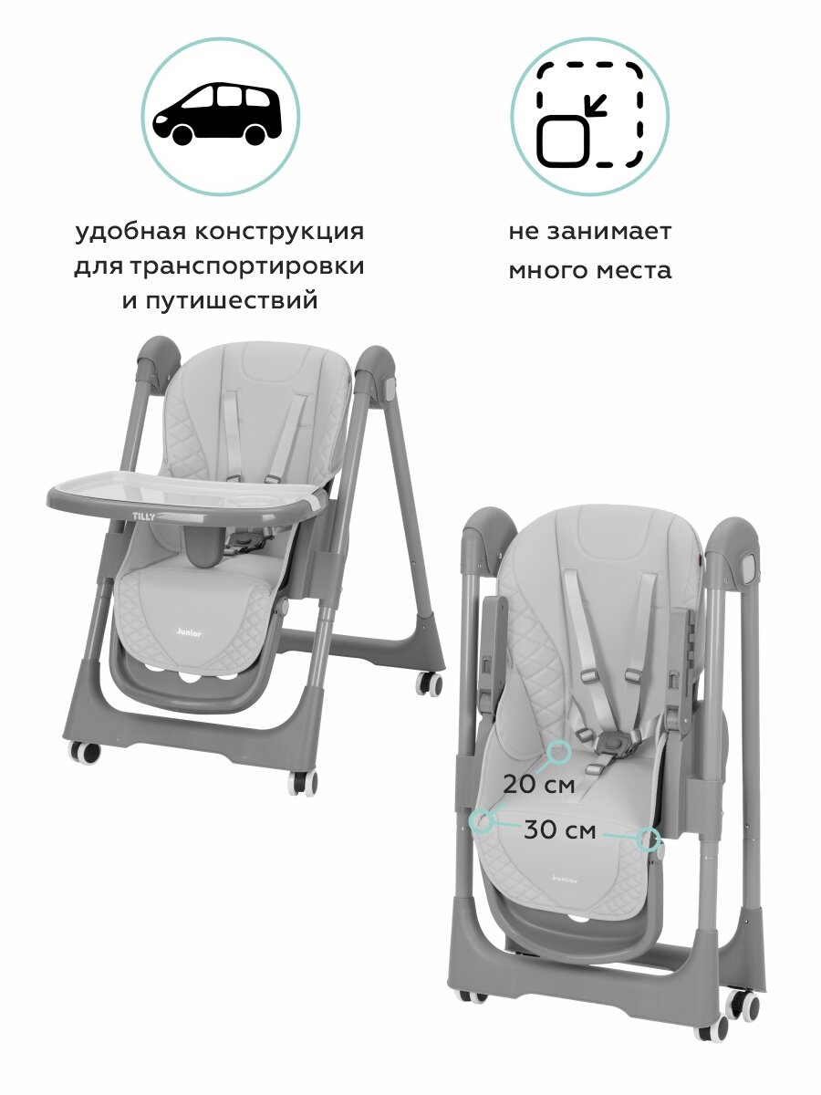 Стульчик для кормления Baby Tilly Junior Light Grey, складной, 5-точечные ремни, светло-серый интересное: