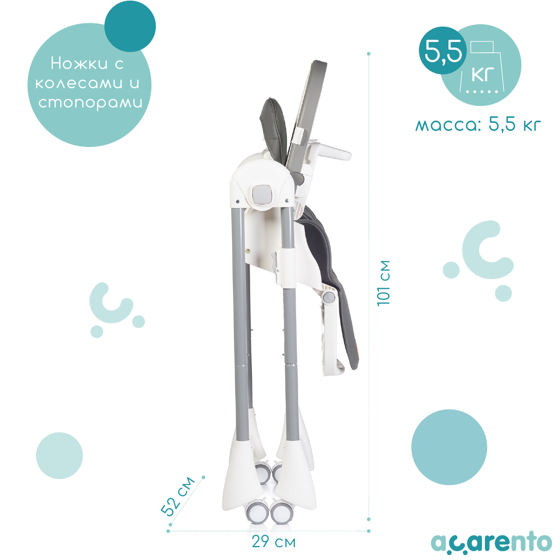 Детский стульчик для кормления - шезлонг Acarento Marmellata, цвет серый интересное: