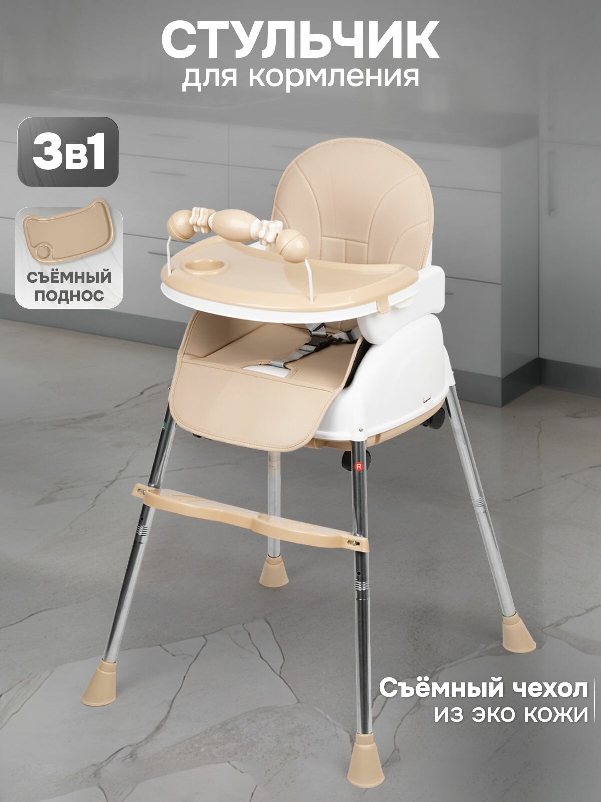Купить Детский складной стульчик для кормления, трансформируемый, бежевый