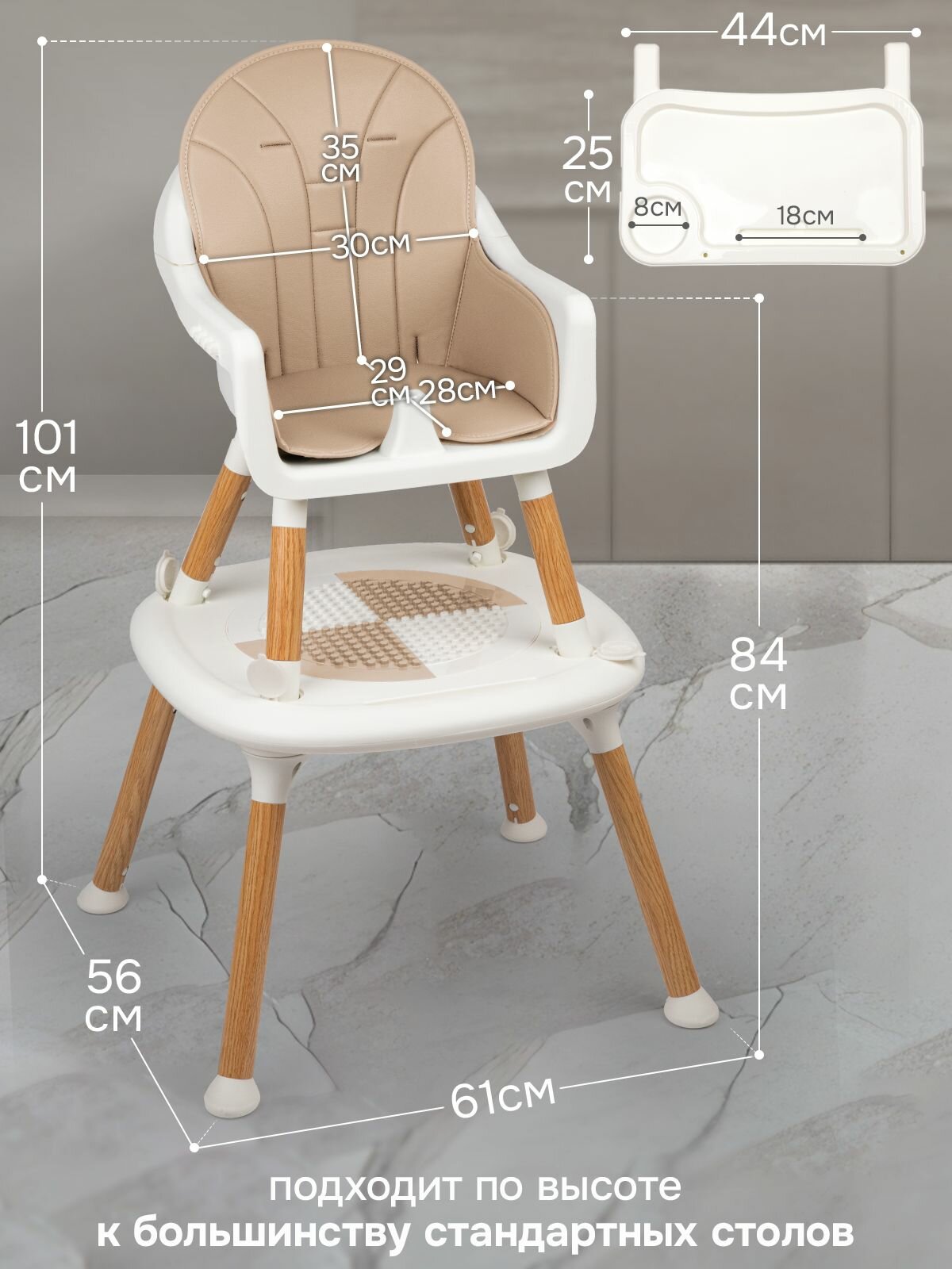 Стульчик для кормления, складной, трансформируемый, бежевый интересное: